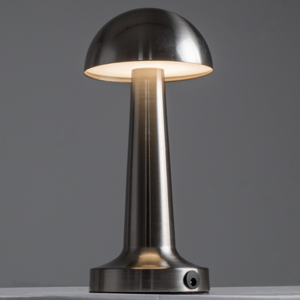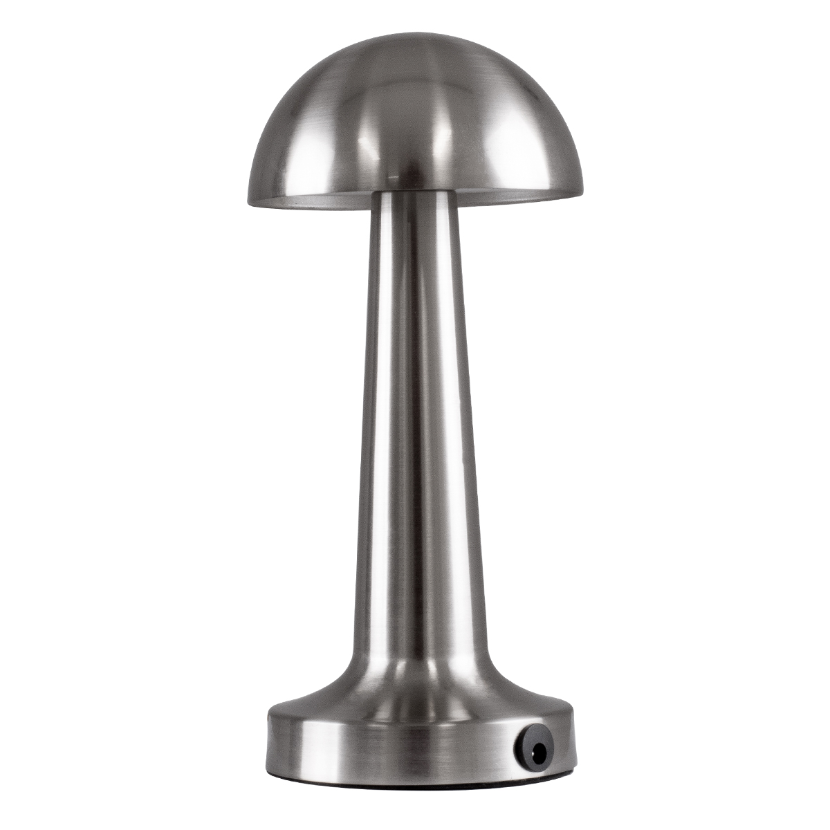 GloboStar® COCO 76510 Επαναφορτιζόμενο Επιτραπέζιο Φωτιστικό Πορτατίφ LED 1.5W 105lm 120° DC 5V IP44 Θερμό Λευκό 2700K Dimmable Ασημί Αλουμίνιο - Μ10 x Π10 x Υ22cm - 2 Xρόνια Εγγύηση