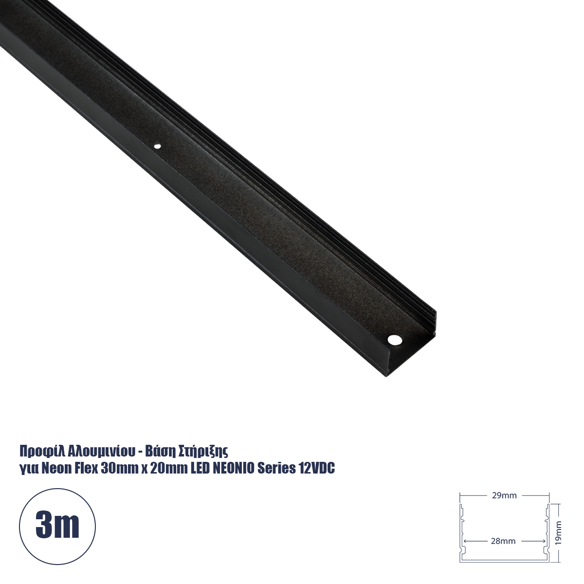 GLOBOSTAR® ALP-19S NEONIO 90771-3M Επιφανειακό Προφίλ Αλουμινίου για Ταινίες LED NEONIO - Μαύρο - Μ300 x Π2.9 x Υ1.9cm