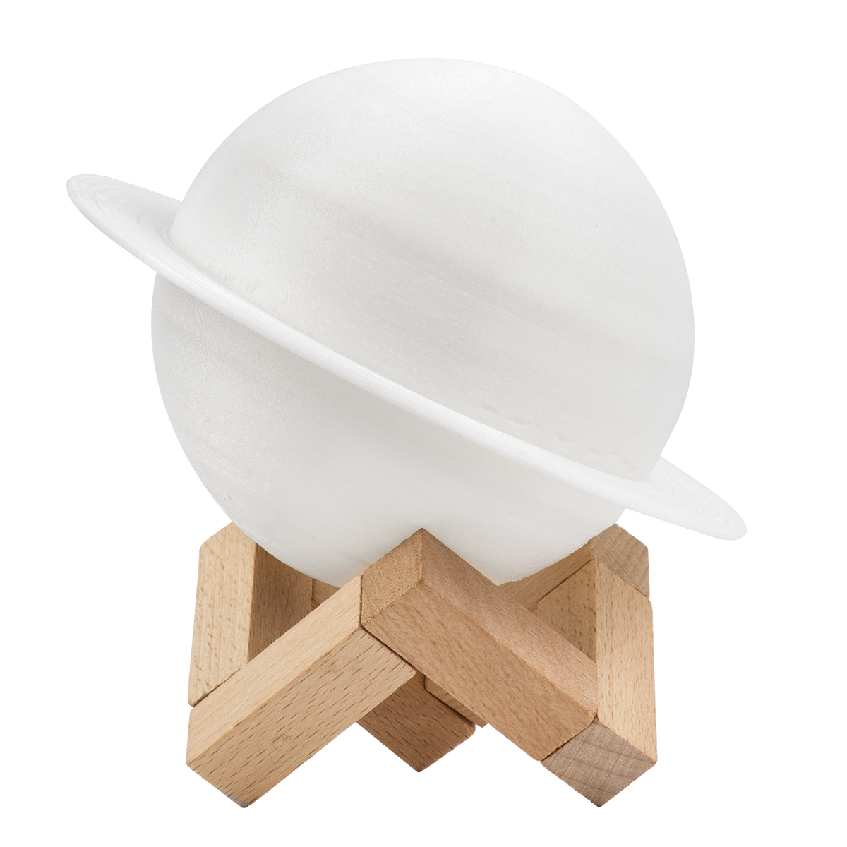 GloboStar® MOON 79608 Επιτραπέζιο Φωτιστικό Πορτατίφ LED 2W 120lm 360° DC 5V IP20 RGBW Dimmable Λευκό Πλαστικό με Μπεζ Ξύλο - Μ15 x Π15 x Υ13.5cm - 2 Xρόνια Εγγύηση
