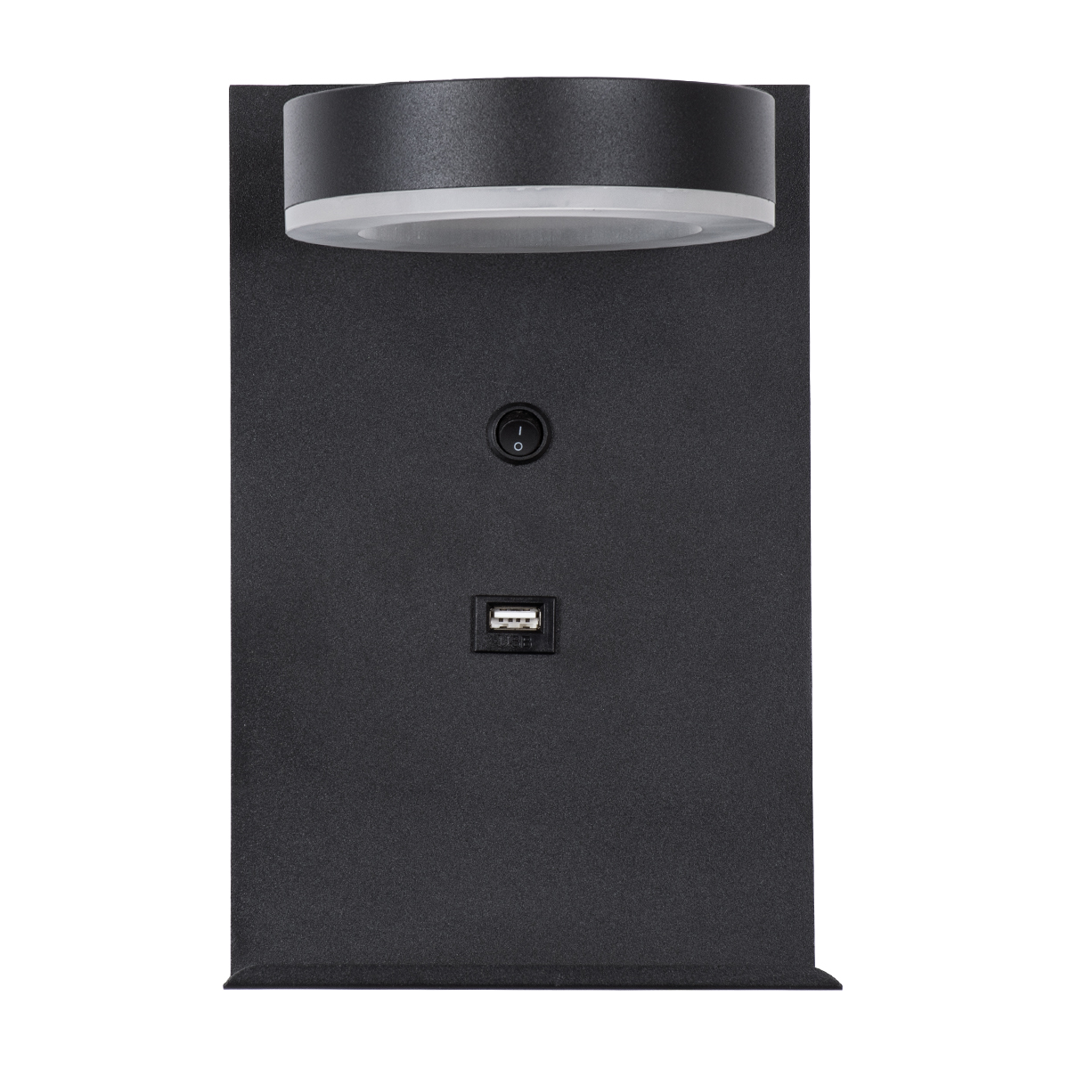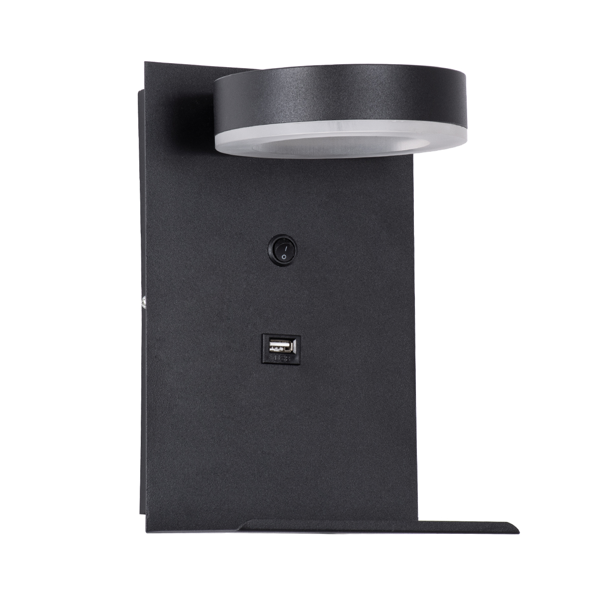 GLOBOSTAR® CROWN 61370 Μοντέρνο Φωτιστικό Τοίχου - Απλίκα Ξενοδοχείου Reading Light με Φορτιστή USB 3A LED 5W 550lm 120° AC 220-240V IP20 Φυσικό Λευκό 4500K - Bridgelux COB Chip & TÜV SÜD Driver - Μαύρο Ματ - Μ15 x Π15 x Υ23cm - 3 Χρόνια Εγγύηση