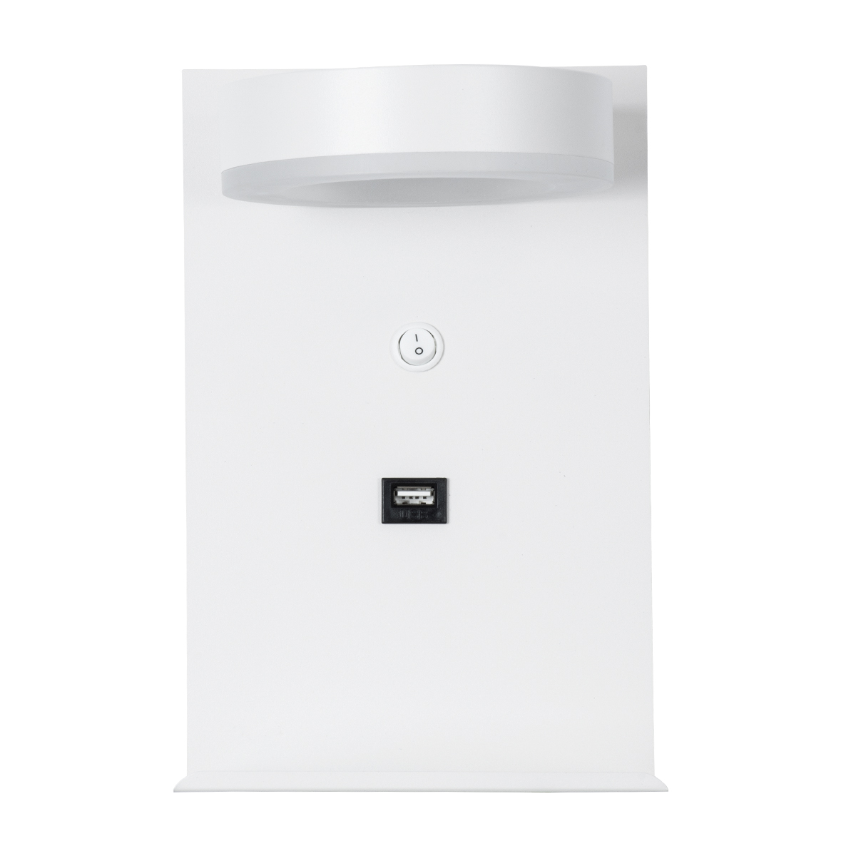 GLOBOSTAR® CROWN 61371 Μοντέρνο Φωτιστικό Τοίχου - Απλίκα Ξενοδοχείου Reading Light με Φορτιστή USB 3A LED 5W 550lm 120° AC 220-240V IP20 Φυσικό Λευκό 4500K - Bridgelux COB Chip & TÜV SÜD Driver - Λευκό Ματ - Μ15 x Π15 x Υ23cm - 3 Χρόνια Εγγύηση