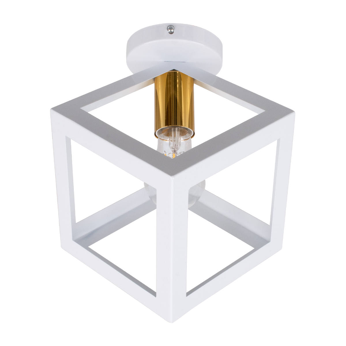 GLOBOSTAR® CUBE 00800 Μοντέρνο Φωτιστικό Οροφής με Ντουί 1 x E27 AC 220-240V IP20 - Λευκό & Χρυσό - Μ25 x Π25 x Υ25cm