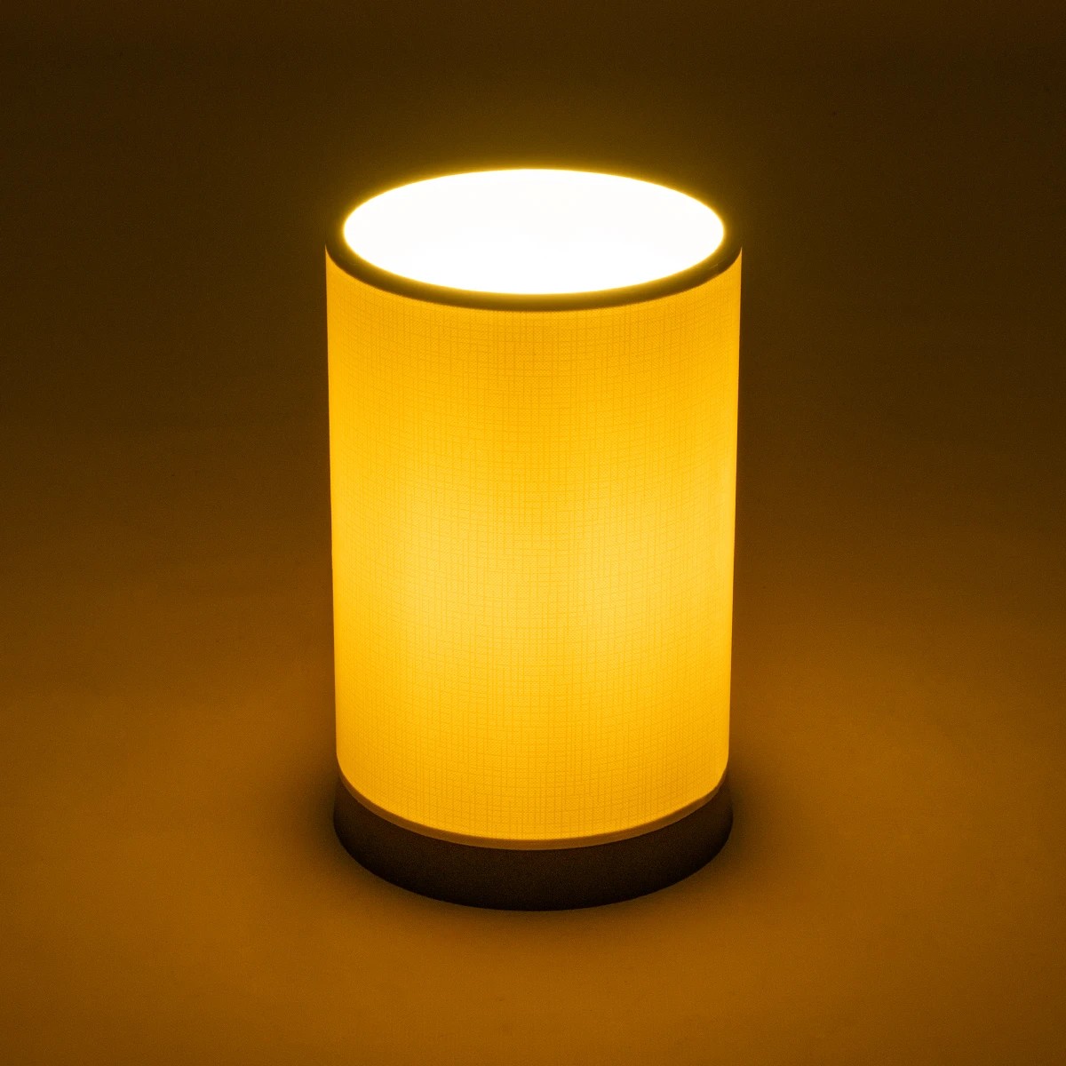 GloboStar® CYLINDER 203-0183 Μοντέρνο Επιτραπέζιο Φωτιστικό Πορτατίφ Μονόφωτο 1 x E27 IP20 Μαύρο Πλαστικό με Μπεζ Υφασμα - Μ14 x Π14 x Υ22cm