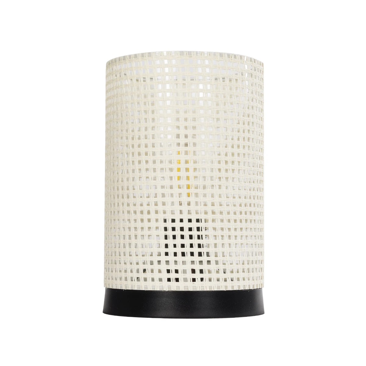 GloboStar® CYLINDER 203-0184 Μοντέρνο Επιτραπέζιο Φωτιστικό Πορτατίφ Μονόφωτο 1 x E27 IP20 Μαύρo Πλαστικό με Λευκό Διάτρητο Υφασμα - Μ14 x Π14 x Υ22cm