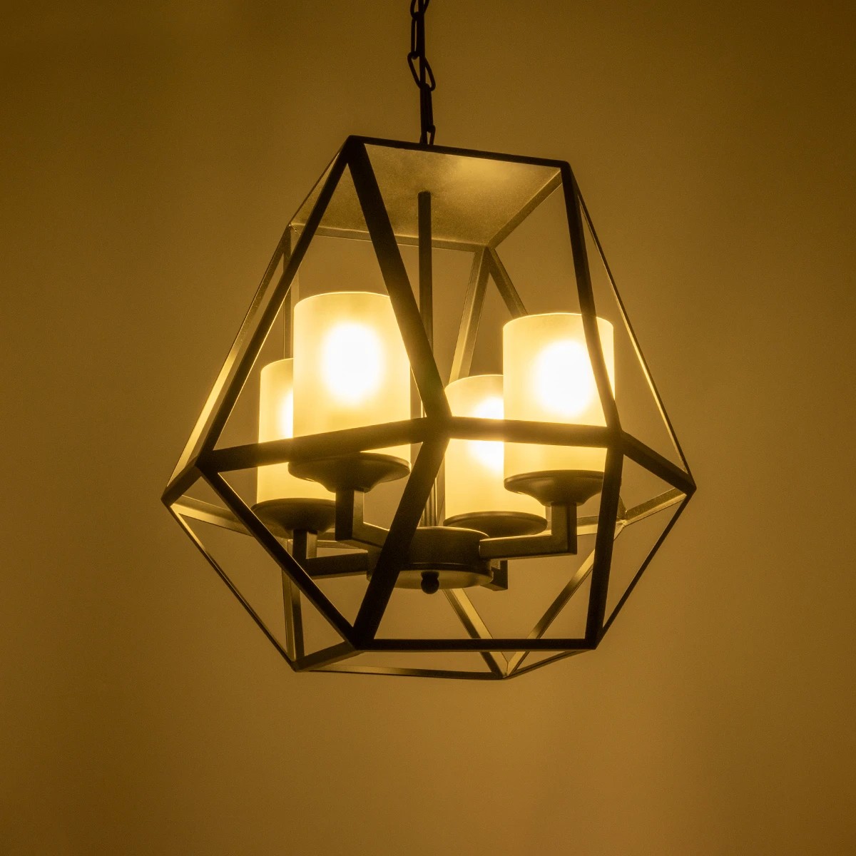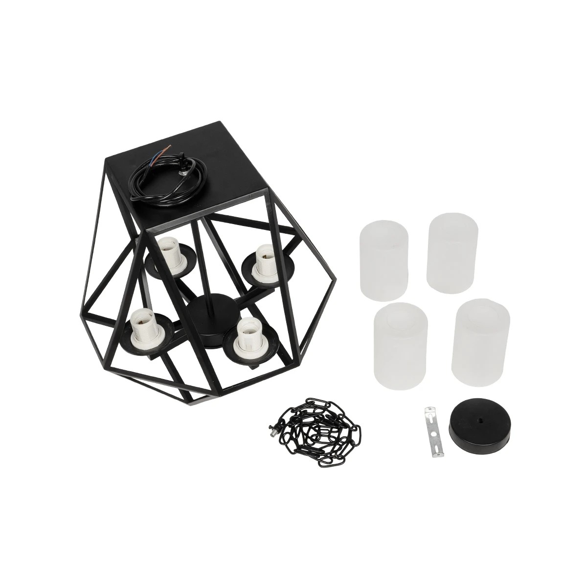 GLOBOSTAR® DASTAR 999-0091 Vintage Κρεμαστό Φωτιστικό Οροφής με Ντουί 4 x E27 AC 220-240V IP20 - Μαύρο & Λευκό - Μ42 x Π42 x Υ43cm