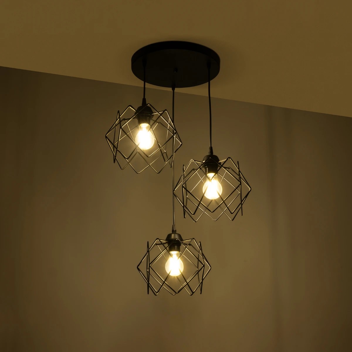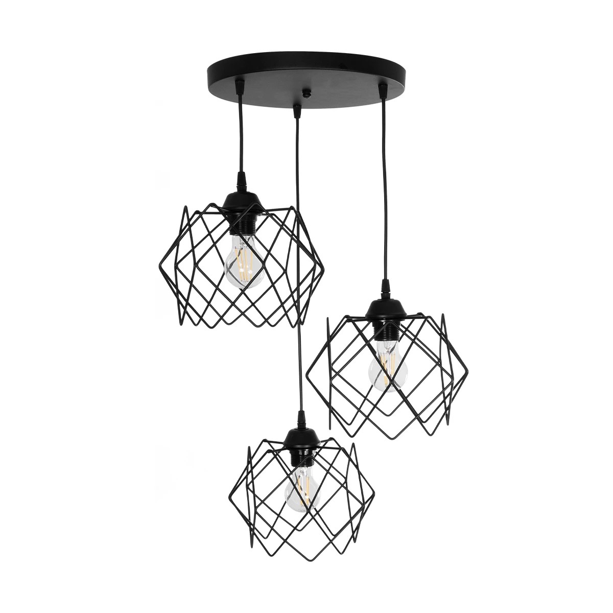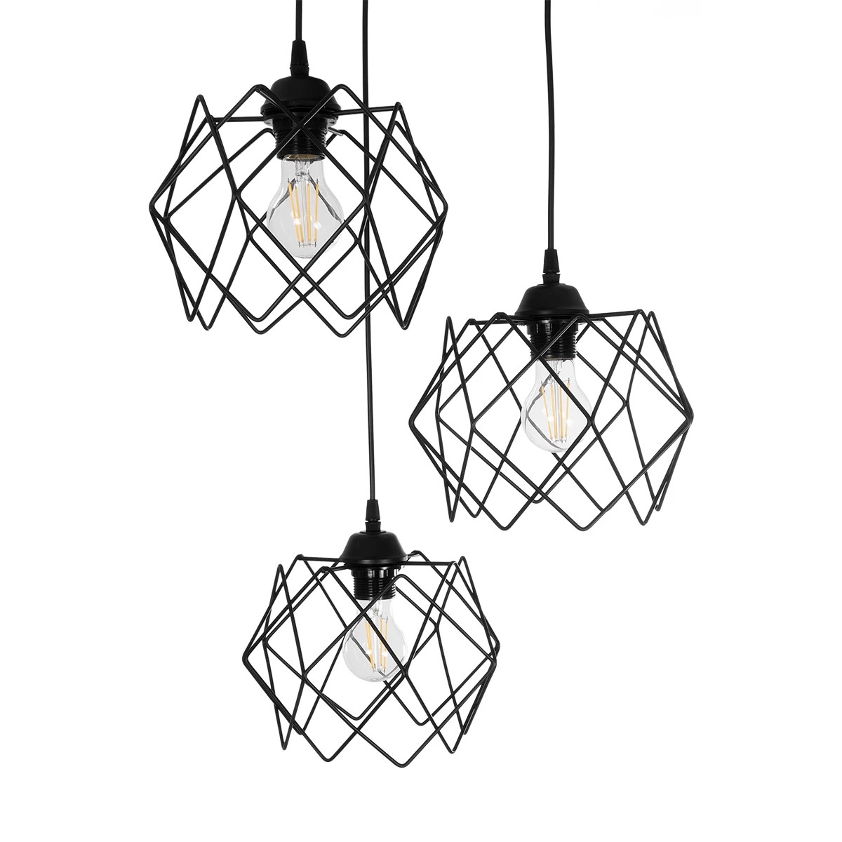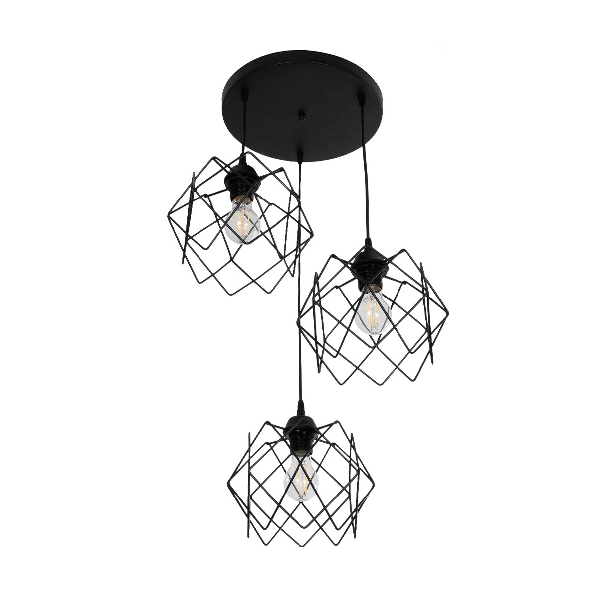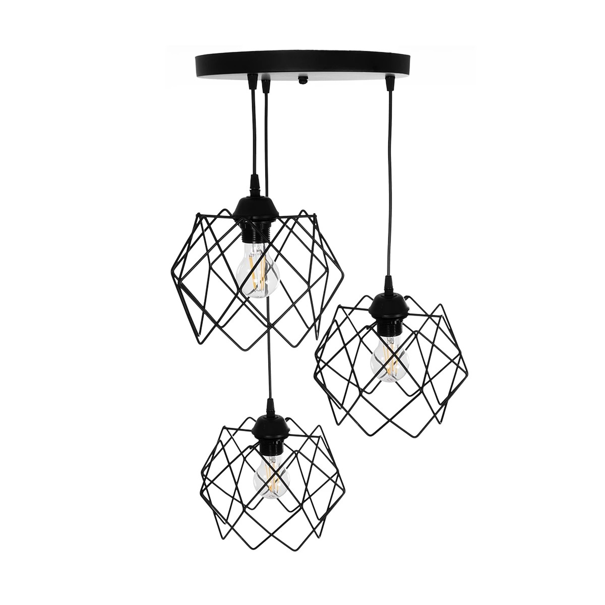 GLOBOSTAR® DAZLA 201-0024 Vintage Κρεμαστό Φωτιστικό Οροφής με Ντουί 3 x E27 AC 220-240V IP20 - Μαύρο - Μ47 x Π47 x Υ60cm