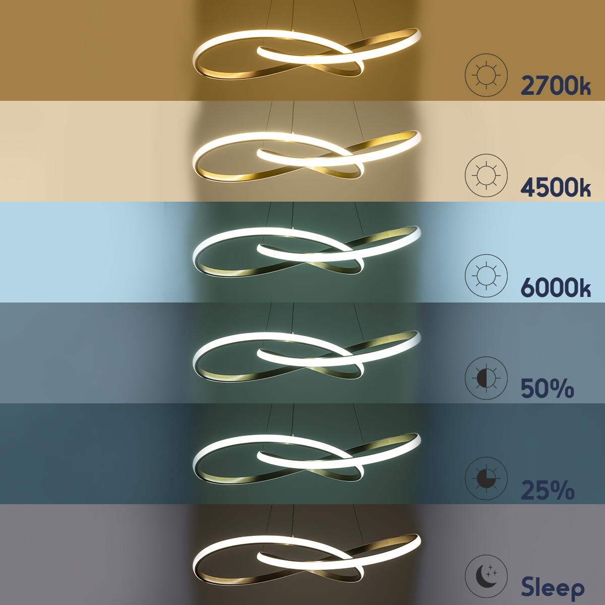 GLOBOSTAR® DEXTER 60916 Μοντέρνο Κρεμαστό Φωτιστικό Οροφής LED 90W 10080lm 300° AC 220-240V IP20 Ρυθμιζόμενο Λευκό CCT με Χειριστήριο από 2700K έως 6000K Dimmable - Lumileds SMD Chip - Χρυσό Βούρτσας - Μ73 x Π73 x Υ16cm - 3 Χρόνια Εγγύηση