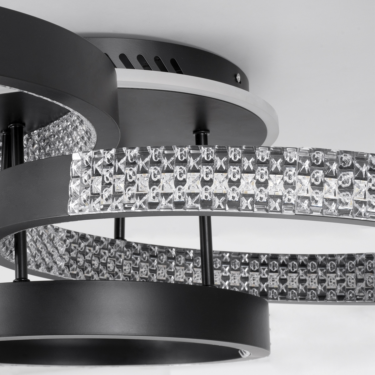 GLOBOSTAR® DIAMOND 61114 Μοντέρνο Φωτιστικό Οροφής LED 100W 12123lm 360° AC 220-240V IP20 Ρυθμιζόμενο Λευκό CCT με Χειριστήριο από 2700K έως 6000K Dimmable - Lumileds SMD Chip - Μαύρο Ματ - Μ80 x Π50 x Υ20cm - 3 Χρόνια Εγγύηση