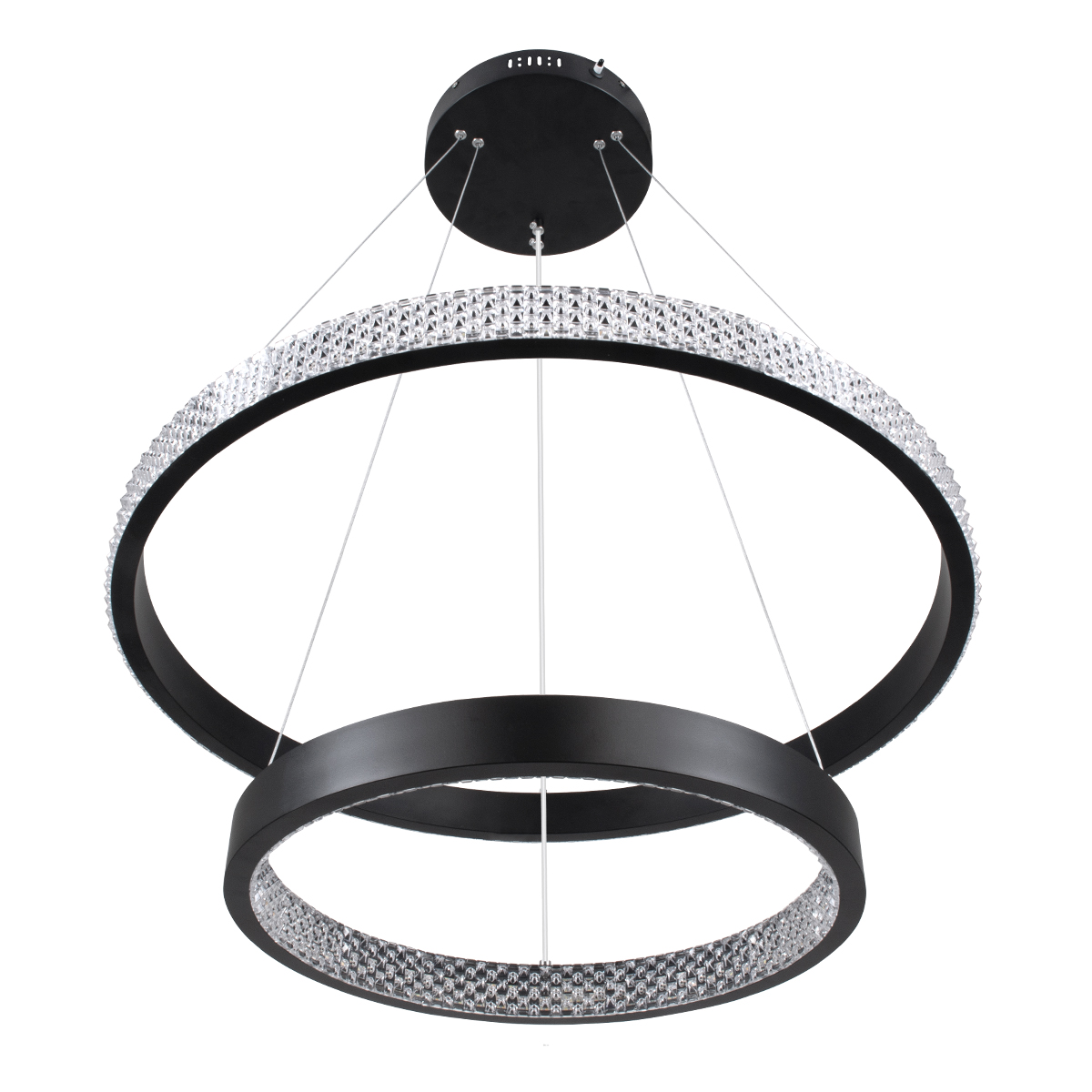 GLOBOSTAR® DIAMOND DUO 61150 Μοντέρνο Κρεμαστό Φωτιστικό Οροφής LED 75W 8743lm 360° AC 220-240V IP20 Ρυθμιζόμενο Λευκό CCT με Χειριστήριο από 2700K έως 6000K Dimmable - Lumileds SMD Chip - Μαυρό Ματ - Μ60 x Π60 x Υ60cm - 3 Χρόνια Εγγύηση