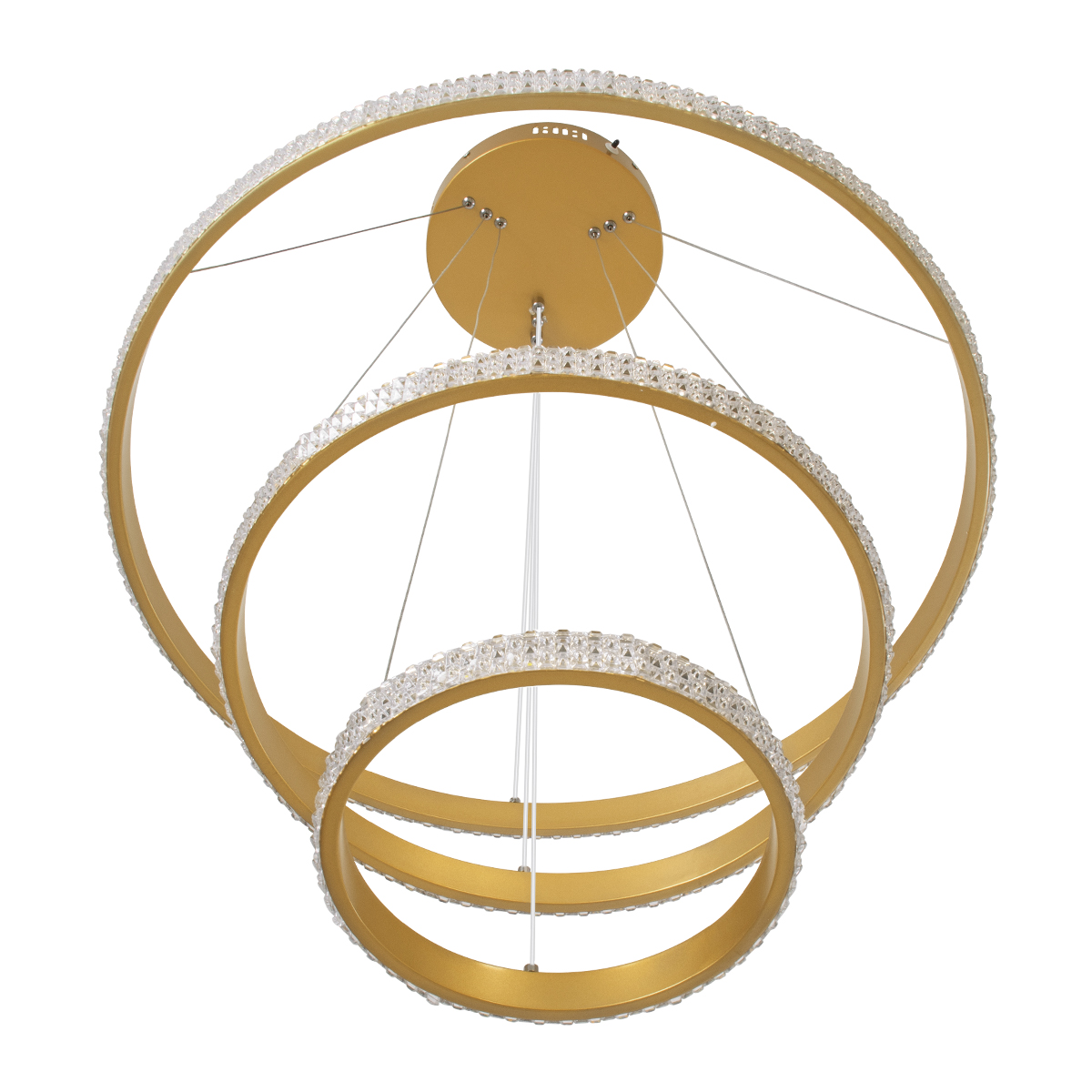 GLOBOSTAR® DIAMOND TRIO 61137 Μοντέρνο Κρεμαστό Φωτιστικό Οροφής LED 100W 12123lm 360° AC 220-240V IP20 Ρυθμιζόμενο Λευκό CCT με Χειριστήριο από 2700K έως 6000K Dimmable - Lumileds SMD Chip - Χρυσό Βούρτσας - Μ60 x Π60 x Υ60cm - 3 Χρόνια Εγγύηση