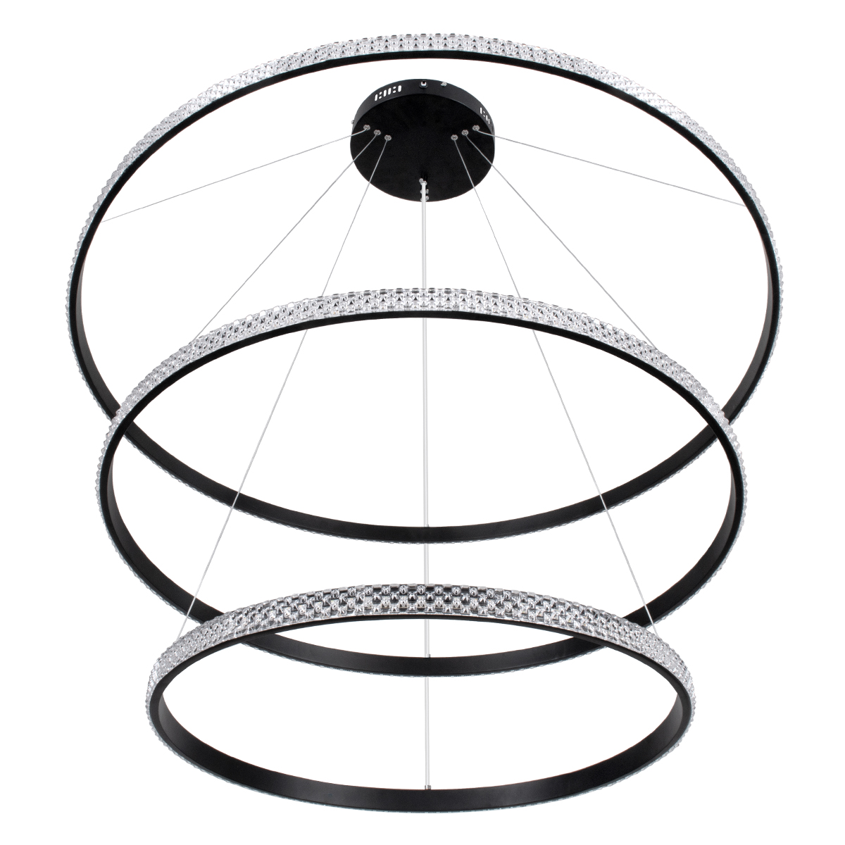 GLOBOSTAR® DIAMOND TRIO 61140-DECO Μοντέρνο Κρεμαστό Φωτιστικό Οροφής LED 150W 18379lm 360° AC 220-240V IP20 Ρυθμιζόμενο Λευκό CCT με Χειριστήριο από 2700K έως 6000K Dimmable - Lumileds SMD Chip - Μαύρο Ματ - Μ100 x Π100 x Υ100cm - 3 Χρόνια Εγγύηση