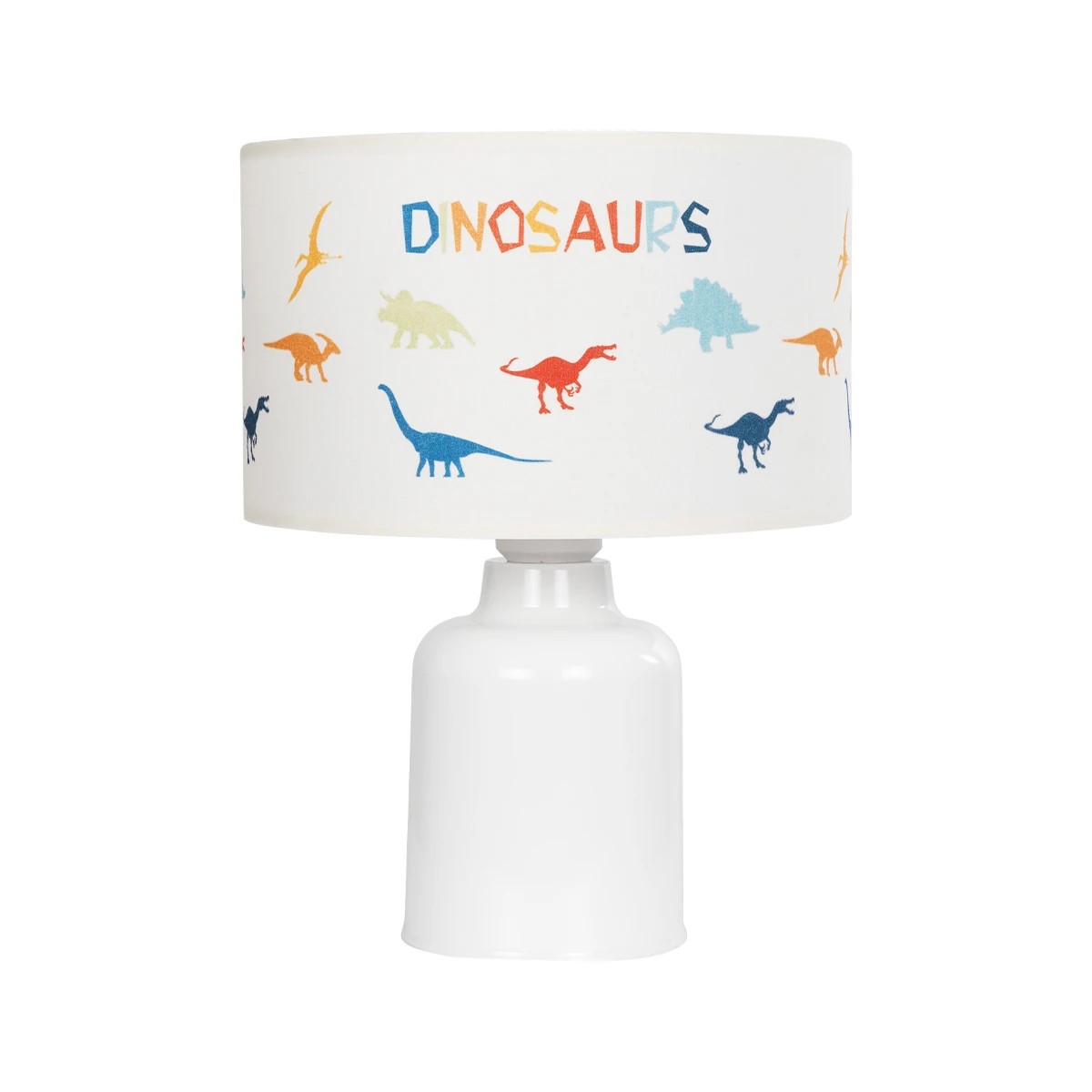 GloboStar® DINO 204-0028 Παιδικό Eπιτραπέζιο Φωτιστικό Πορτατίφ Μονόφωτο 1 x E27 IP20 Πολύχρωμο Ύφασμα με Λευκό Πλαστικό - Μ24 x Π24 x Υ32cm