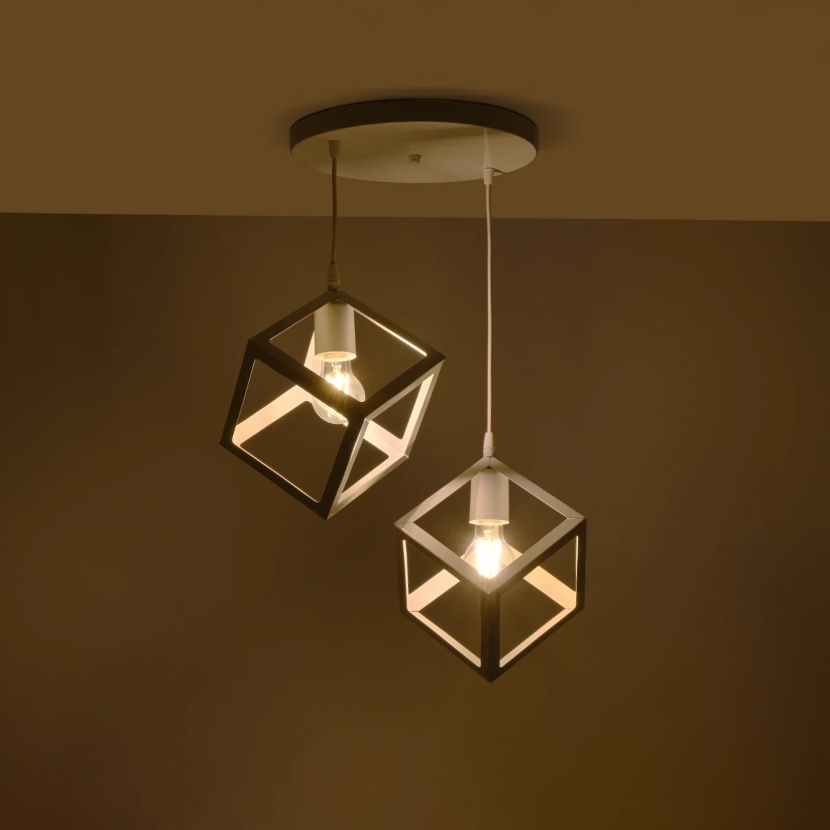 GLOBOSTAR® DISE 201-0053 Μοντέρνο Κρεμαστό Φωτιστικό Οροφής με Ντουί 2 x E27 AC 220-240V IP20 - Λευκό - Μ50 x Π30 x Υ50cm