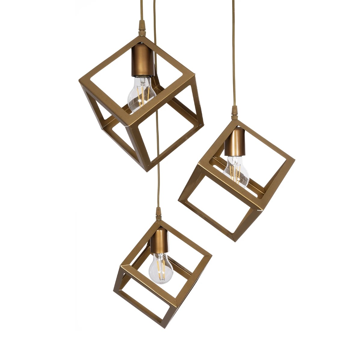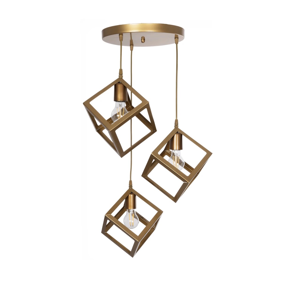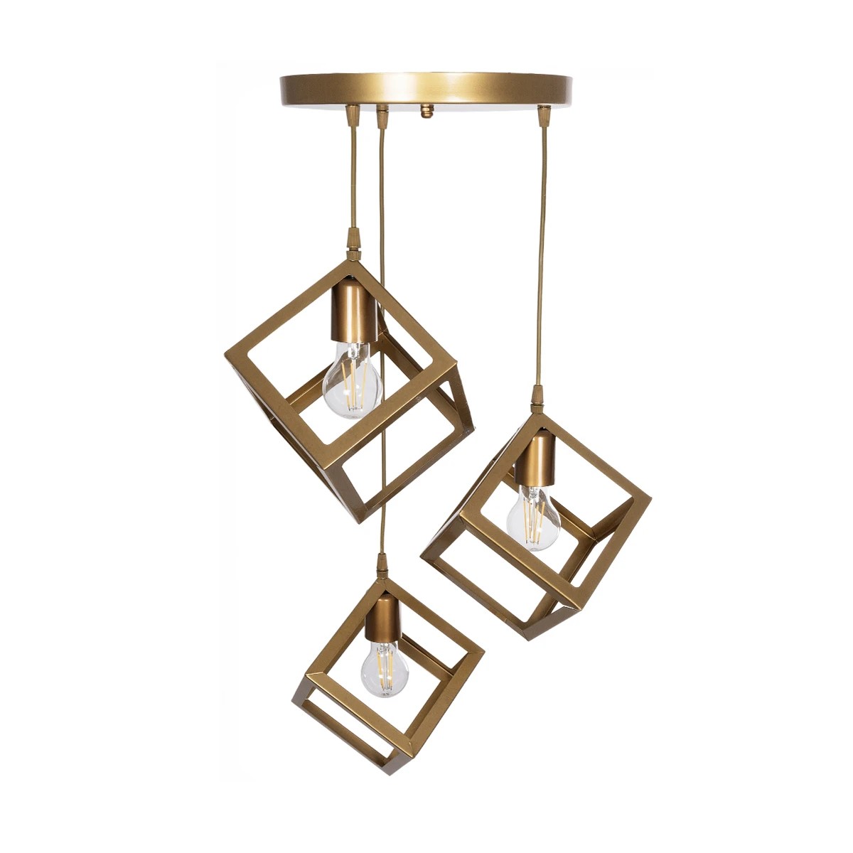 GLOBOSTAR® DISE 201-0057 Μοντέρνο Κρεμαστό Φωτιστικό Οροφής με Ντουί 3 x E27 AC 220-240V IP20 - Χρυσό - Μ48 x Π48 x Υ65cm