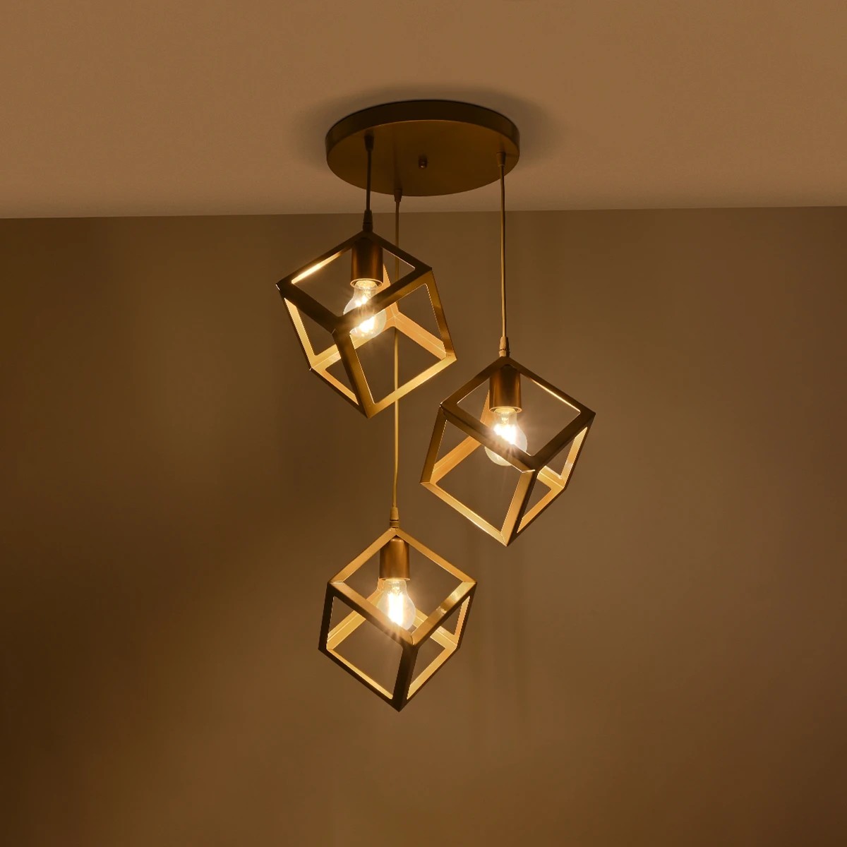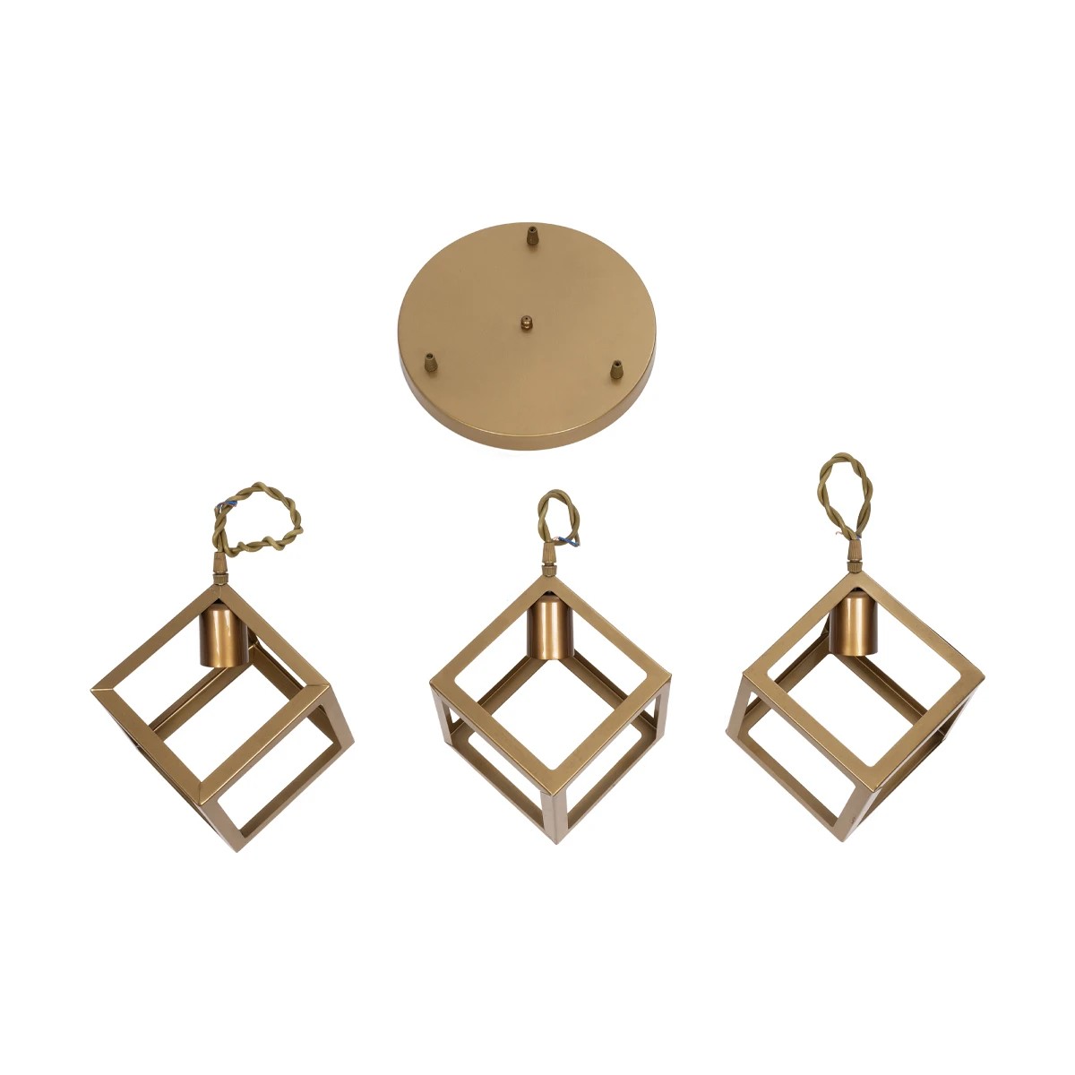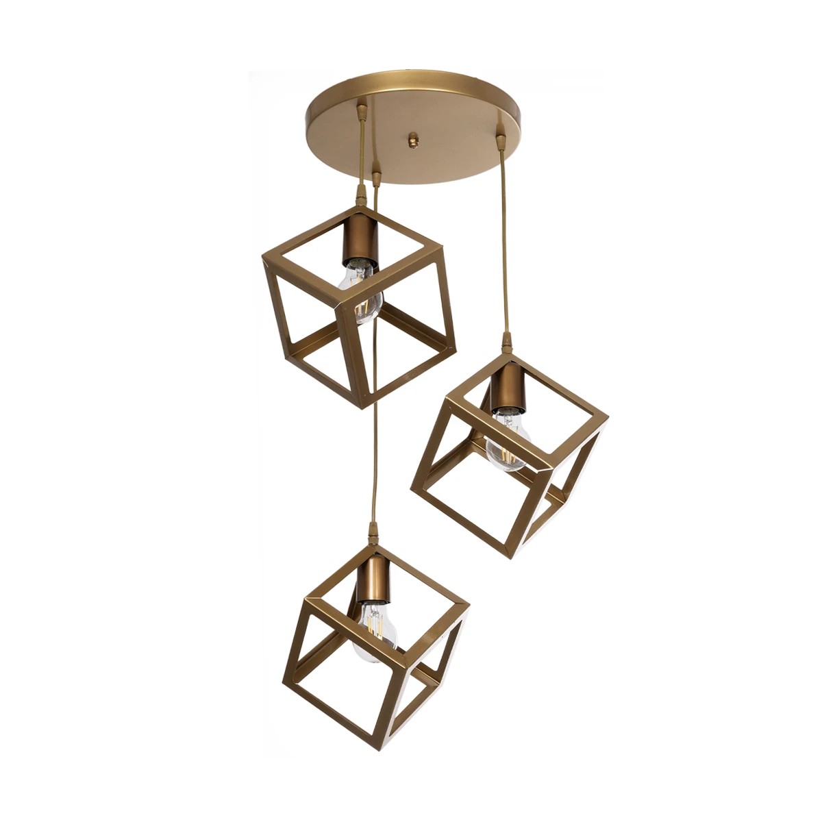 GLOBOSTAR® DISE 201-0057 Μοντέρνο Κρεμαστό Φωτιστικό Οροφής με Ντουί 3 x E27 AC 220-240V IP20 - Χρυσό - Μ48 x Π48 x Υ65cm