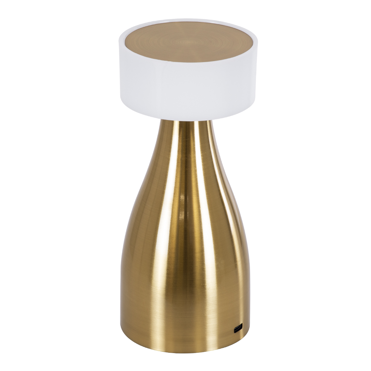 GloboStar® DOLLY 76470 Επαναφορτιζόμενο Επιτραπέζιο Φωτιστικό Πορτατίφ LED 1.5W 105lm 120° DC 5V IP44 CCT Ultra Θερμό 1500K - Φυσικό Λευκό 4500K - Ψυχρό Λευκό 6000K Dimmable Χρυσό & Λευκό Πλαστικό - Μ9 x Π9 x Υ21cm - 2 Χρόνια Εγγύηση