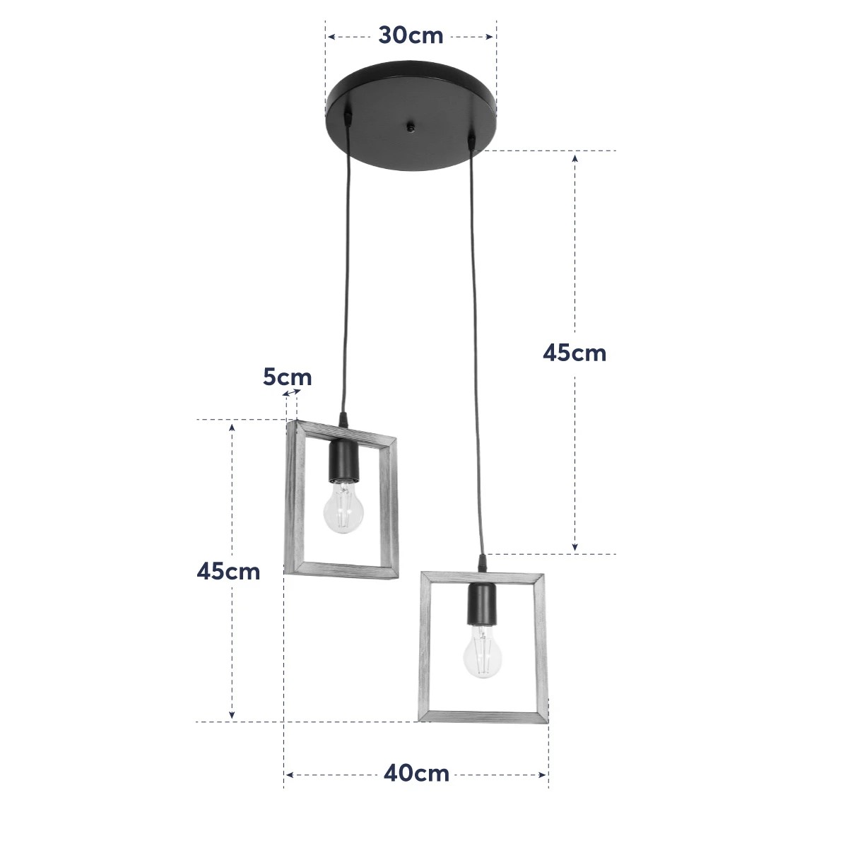 GLOBOSTAR® EDISON 203-0021 Vintage Κρεμαστό Φωτιστικό Οροφής με Ντουί 2 x E27 AC 220-240V IP20 - Μπεζ & Μαύρο - Μ40 x Π20 x Υ45cm