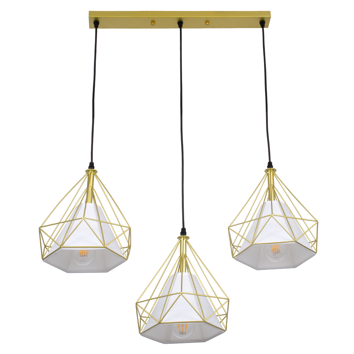 GLOBOSTAR® EIFFEL 61571 Vintage Κρεμαστό Φωτιστικό Οροφής με Ντουί 3 x E27 AC 220-240V IP20 - Χρυσό & Λευκό - Μ68 x Π25 x Υ130cm