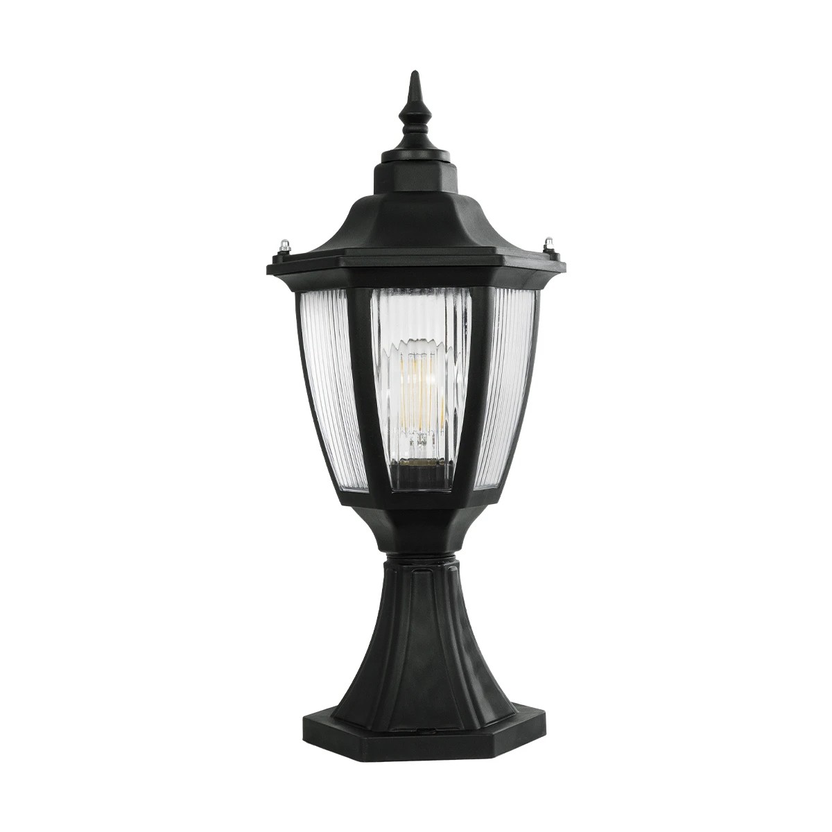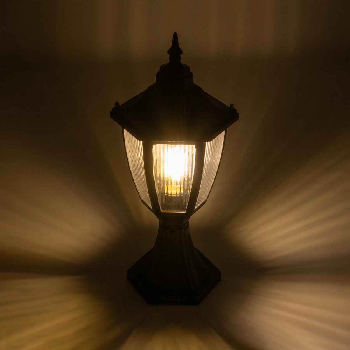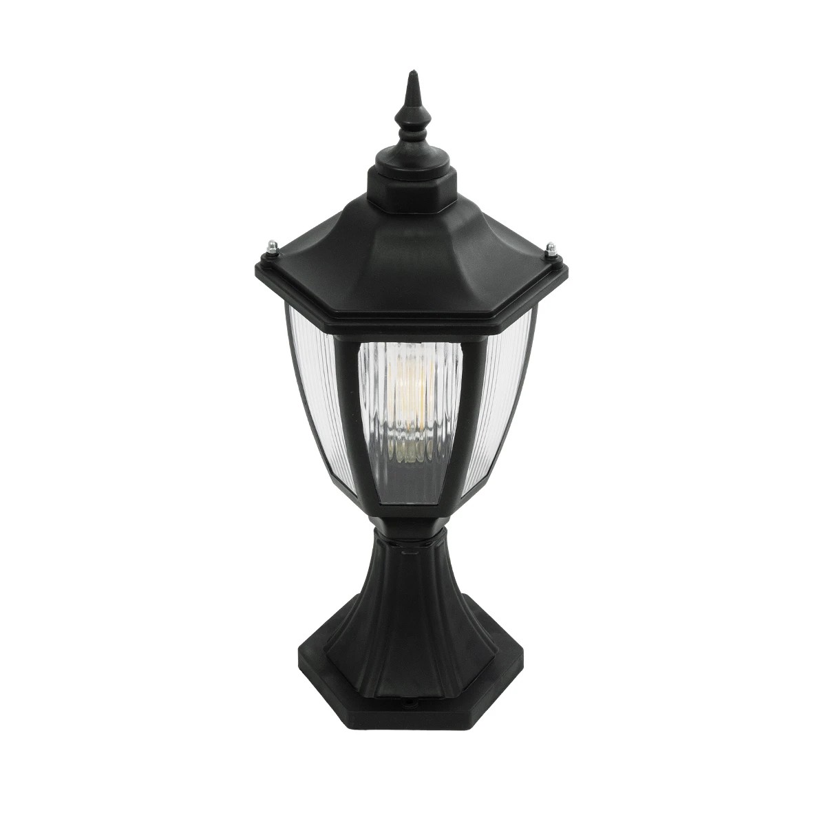 GloboStar® ENGLAND 202-0009 Vintage Επιδαπέδιο Φωτιστικό Φαναράκι Μονόφωτο 1 x E27 IP44 Μαύρο & Διάφανο Πλαστικό - Μ20 x Π20 x Υ45cm