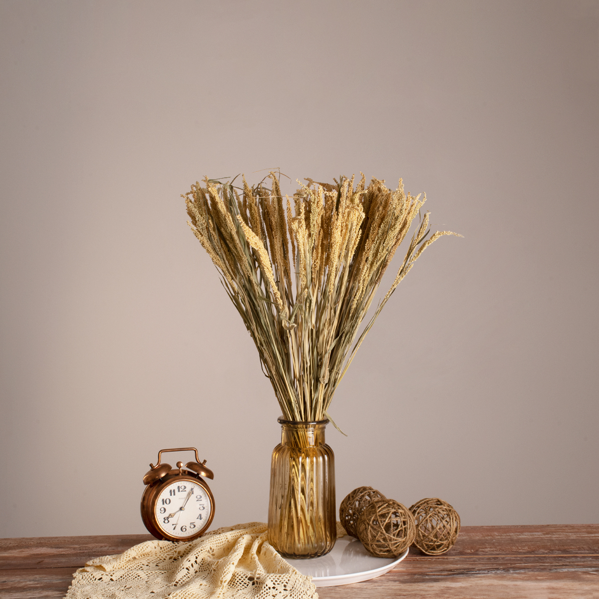 GloboStar® ERICAGRASS 36504 Αποξηραμένο Φυτό Έρρικα - Μπουκέτο Διακοσμητικών Κλαδιών Μπεζ - Πράσινο Υ60cm - Σετ 100 τμχ