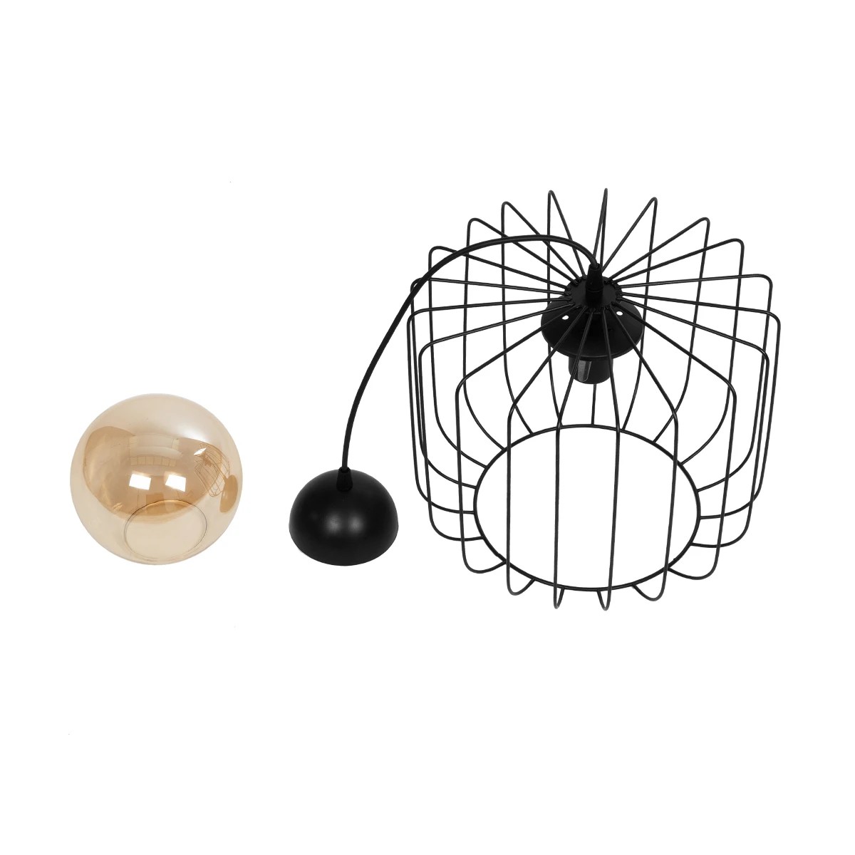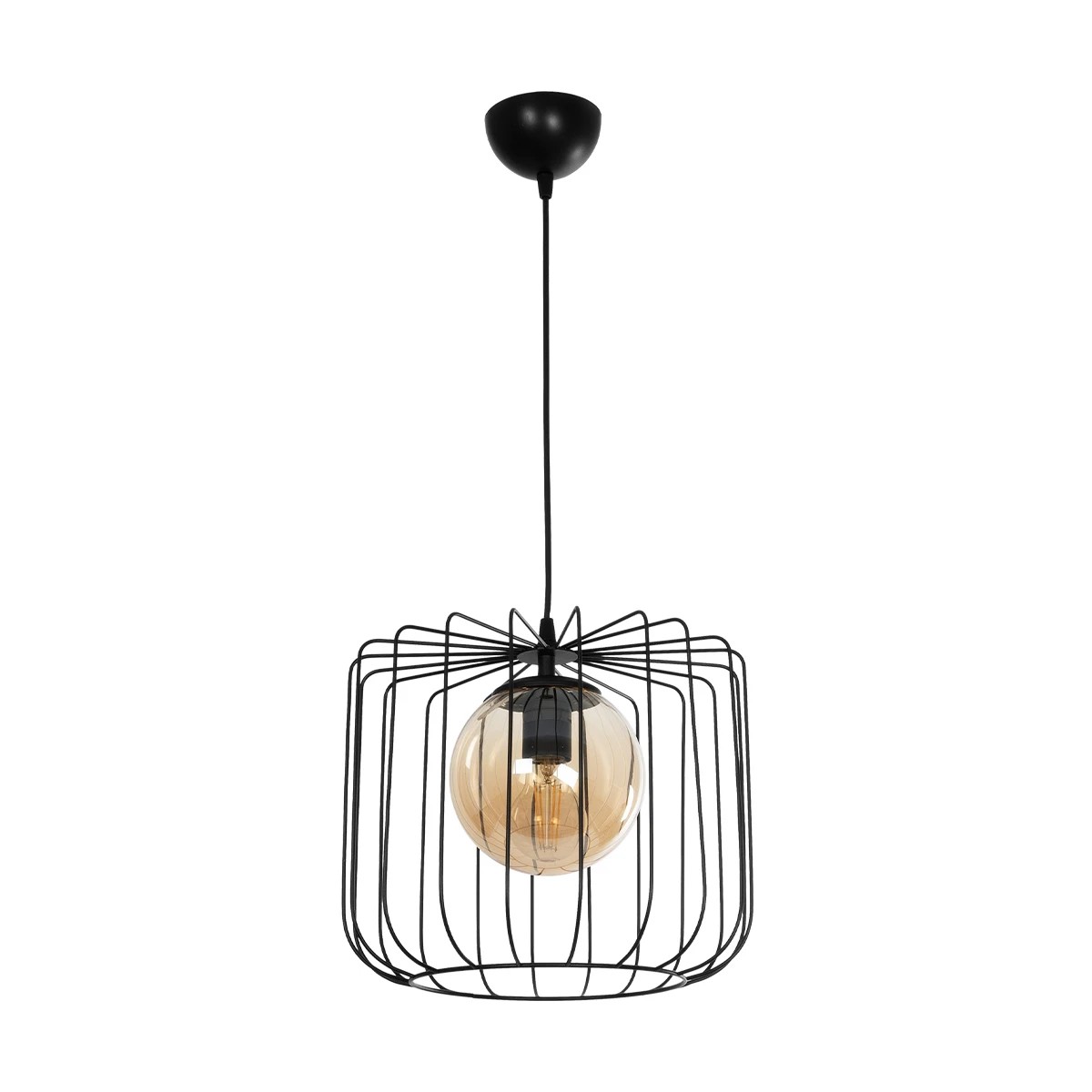 GLOBOSTAR® FLAMIA 201-0099 Vintage Κρεμαστό Φωτιστικό Οροφής με Ντουί 1 x E27 AC 220-240V IP20 - Μαύρο & Μελί - Μ31 x Π31 x Υ29cm