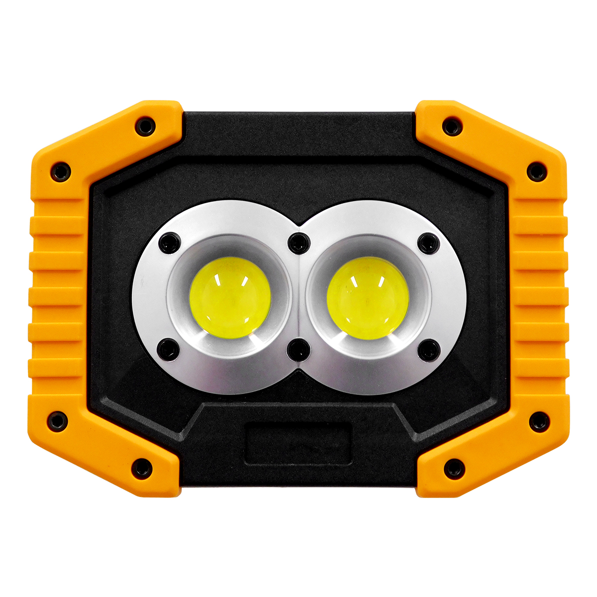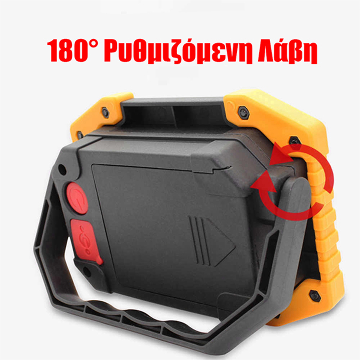 GLOBOSTAR® HELPLAMP 79037 Προβολέας Φακός Camping LED 20W 2000lm 120° DC 5V με Επαναφορτιζόμενη Μπαταρία Li-ion 3.6V 2x18650 4600mAh IP20 Ψυχρό Λευκό 6000K - Sanan COB Chip - Μαύρο & Κίτρινο - Μ11.5 x Π10 x Υ23cm - 1 Χρόνο Εγγύηση