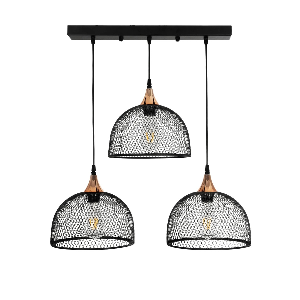 GLOBOSTAR® GLIND 201-0082 Vintage Κρεμαστό Φωτιστικό Οροφής με Ντουί 3 x E27 AC 220-240V IP20 - Μαύρο - Μ60 x Π25 x Υ50cm