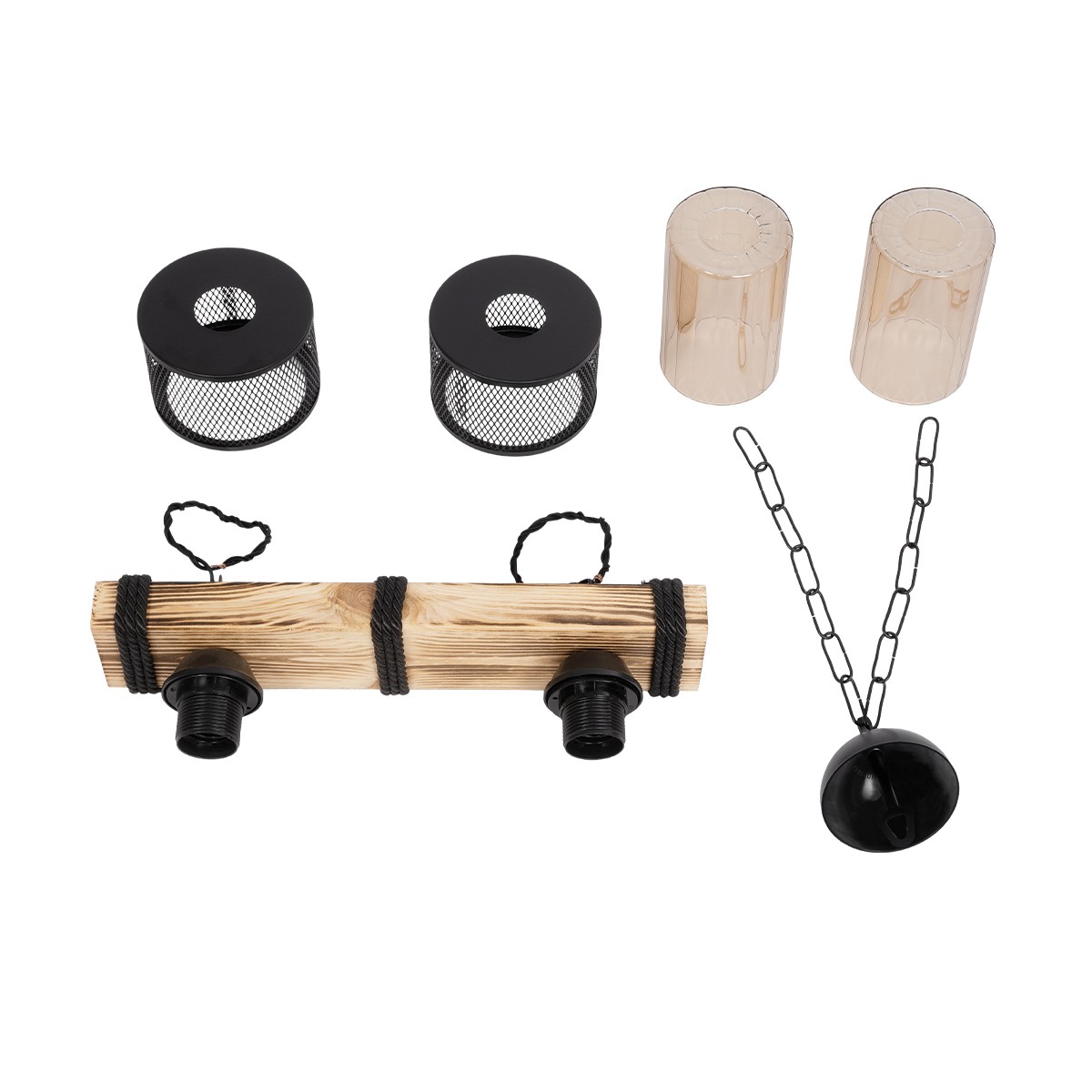 GLOBOSTAR® GLORA 201-0008 Vintage Κρεμαστό Φωτιστικό Οροφής με Ντουί 2 x E27 AC 220-240V IP20 - Μπεζ & Μαύρο - Μ38 x Π12 x Υ21cm