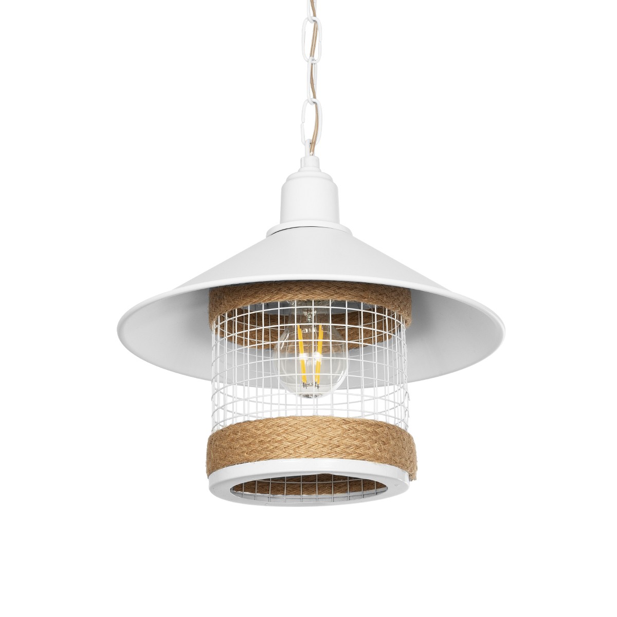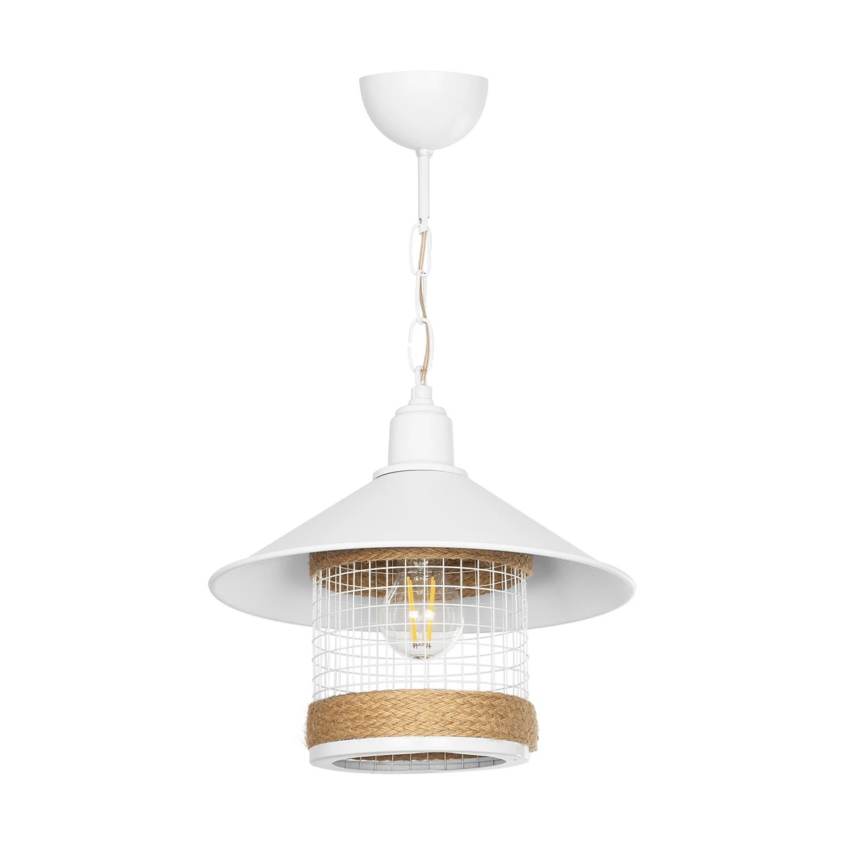 GLOBOSTAR® GLORA 201-0089 Vintage Κρεμαστό Φωτιστικό Οροφής με Ντουί 1 x E27 AC 220-240V IP20 - Λευκο & Μπεζ - Μ30 x Π30 x Υ29cm