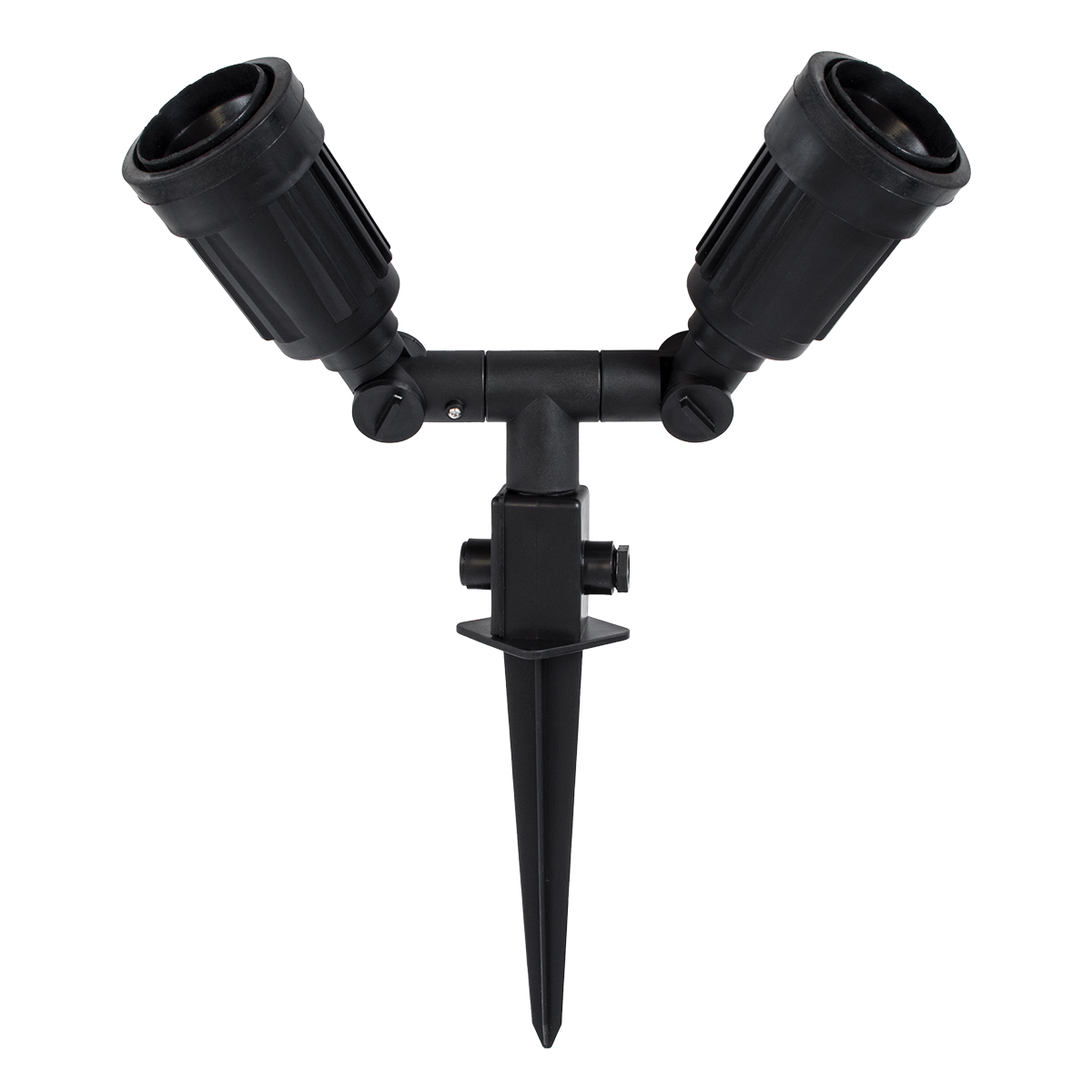 GloboStar® GRASEDO 61614 Καρφωτή Βάση Κήπου με 2 Ντουί E27 για Λάμπες Σποτ PAR38 - Αδιάβροχη IP67 - Υψηλής Αντοχής ABS - VDE Certified - Μ25 x Π7.5 x Υ43.5cm - Μαύρο - 5 Years Warranty