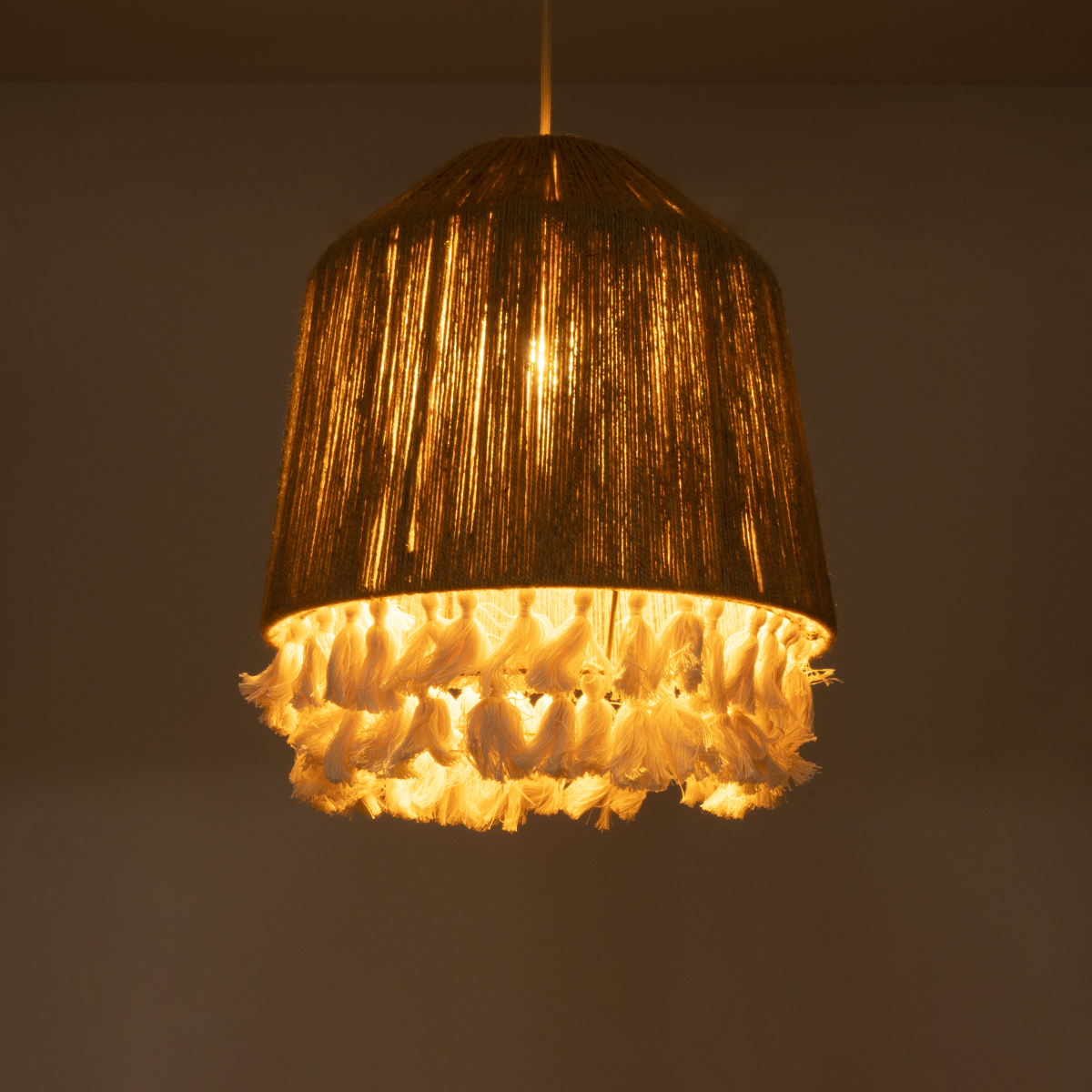 GLOBOSTAR® PUERTORICO 02092 Boho Κρεμαστό Φωτιστικό Οροφής με Ντουί 1 x E27 AC 220-240V IP20 - Μπεζ & Λευκό - Μ40 x Π40 x Υ45cm
