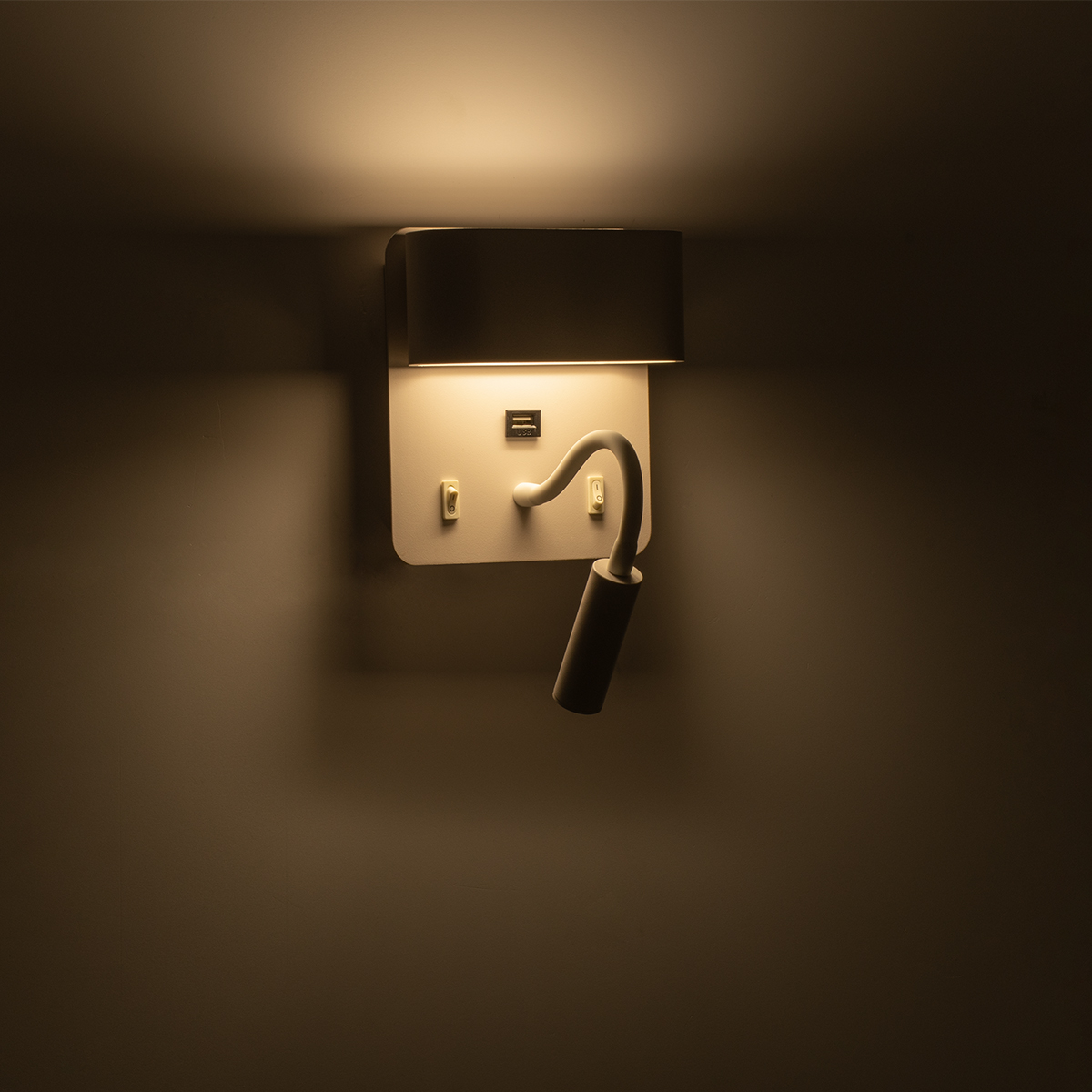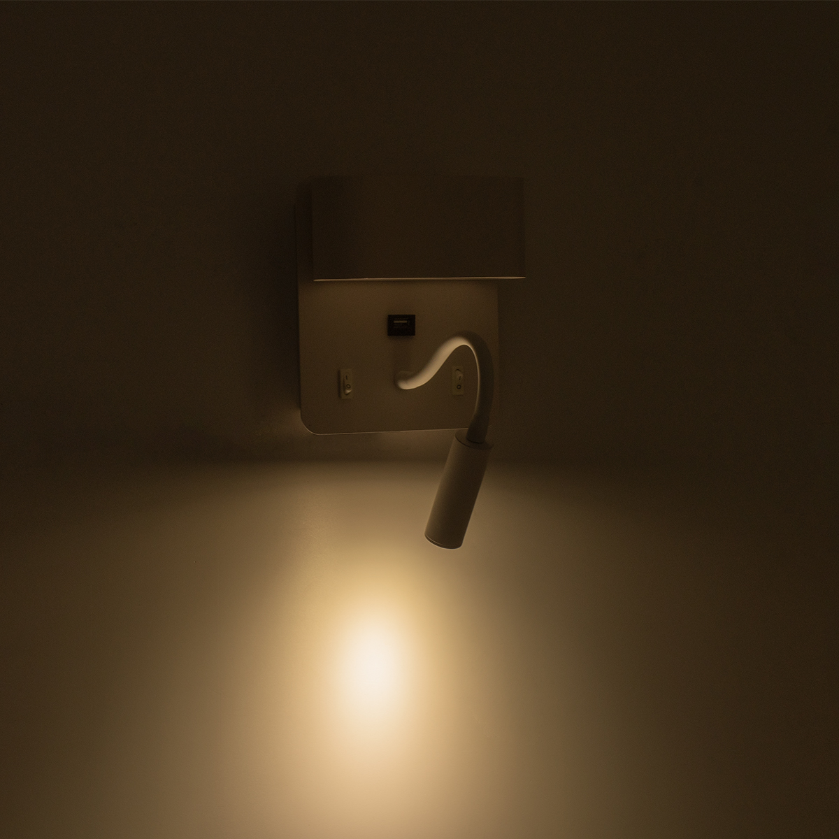 GLOBOSTAR® IBIS 61368 Μοντέρνο Φωτιστικό Τοίχου - Απλίκα Ξενοδοχείου Reading Light με Φορτιστή USB 3A LED 10W 1100lm 36° & 360° AC 220-240V IP20 Φυσικό Λευκό 4500K - Bridgelux COB Chip & TÜV SÜD Driver - Λευκό Ματ - Μ10 x Π6.1 x Υ18cm - 3 Χρόνια Εγγύηση