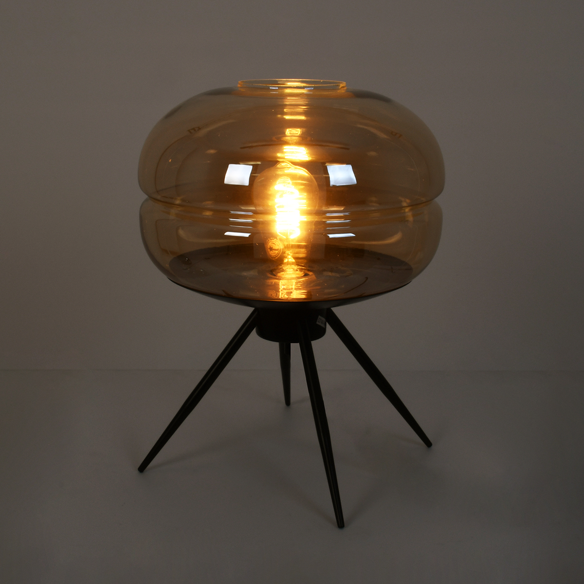 GloboStar® JAVAN 00737 Μοντέρνο Επιτραπέζιο Φωτιστικό Πορτατίφ Μονόφωτο 1 x E27 IP20 Μελί Γυαλί με Μαύρο Μέταλλο - Μ30 x Π30 x Y19cm