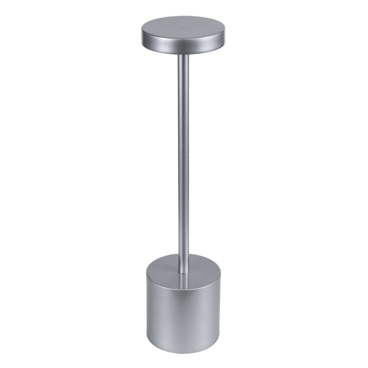 GloboStar® JOJO 76521 Επαναφορτιζόμενο Επιτραπέζιο Φωτιστικό Πορτατίφ LED 1.5W 105lm 120° DC 5V IP44 CCT Ultra Θερμό 1500K - Φυσικό Λευκό 4500K - Ψυχρό Λευκό 6000K Dimmable Ασημί Αλουμίνιο - Μ8 x Π8 x Υ34cm - 2 Χρόνια Εγγύηση