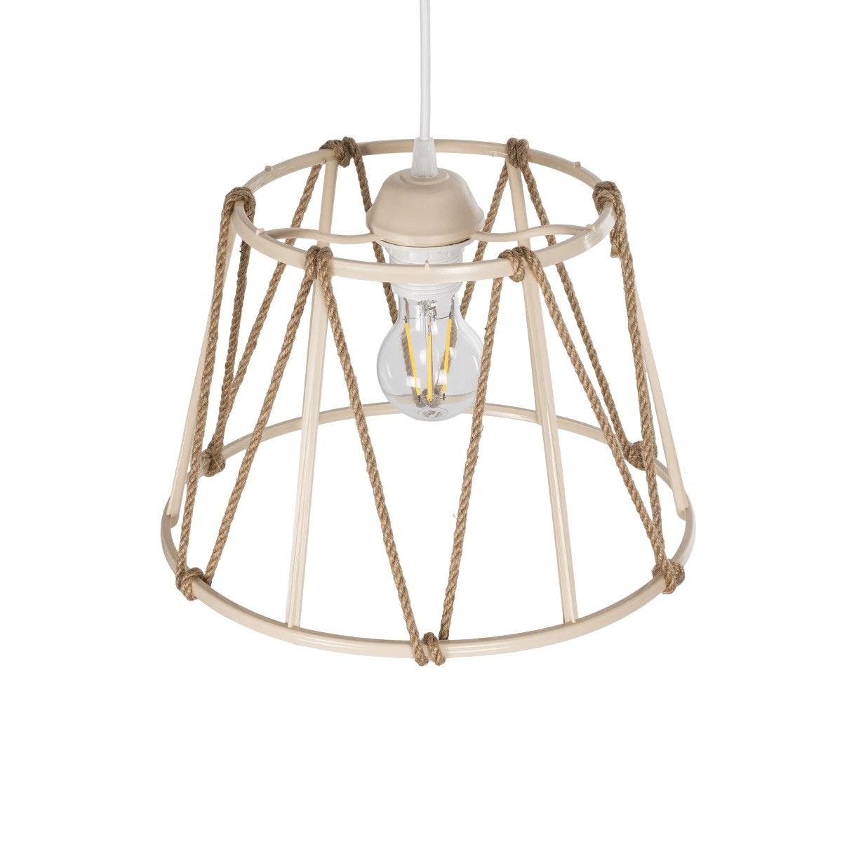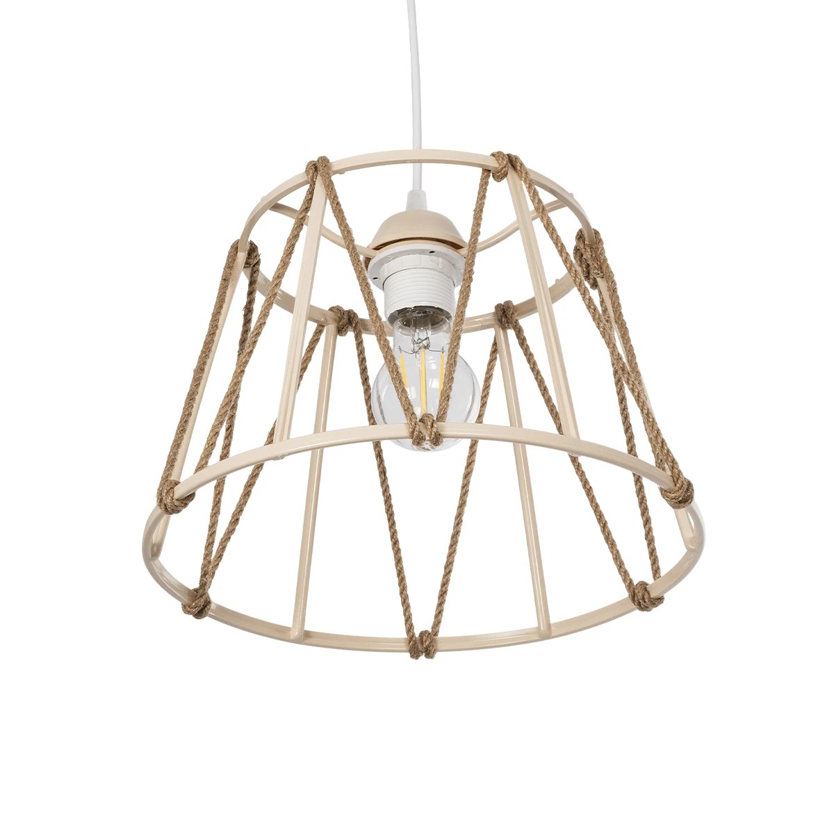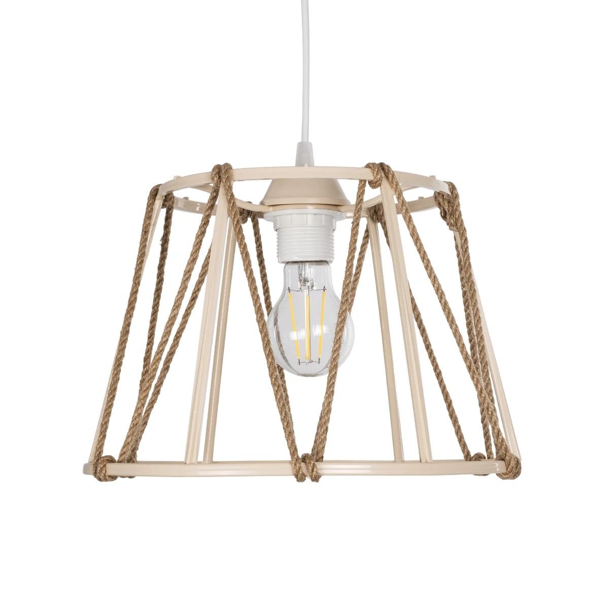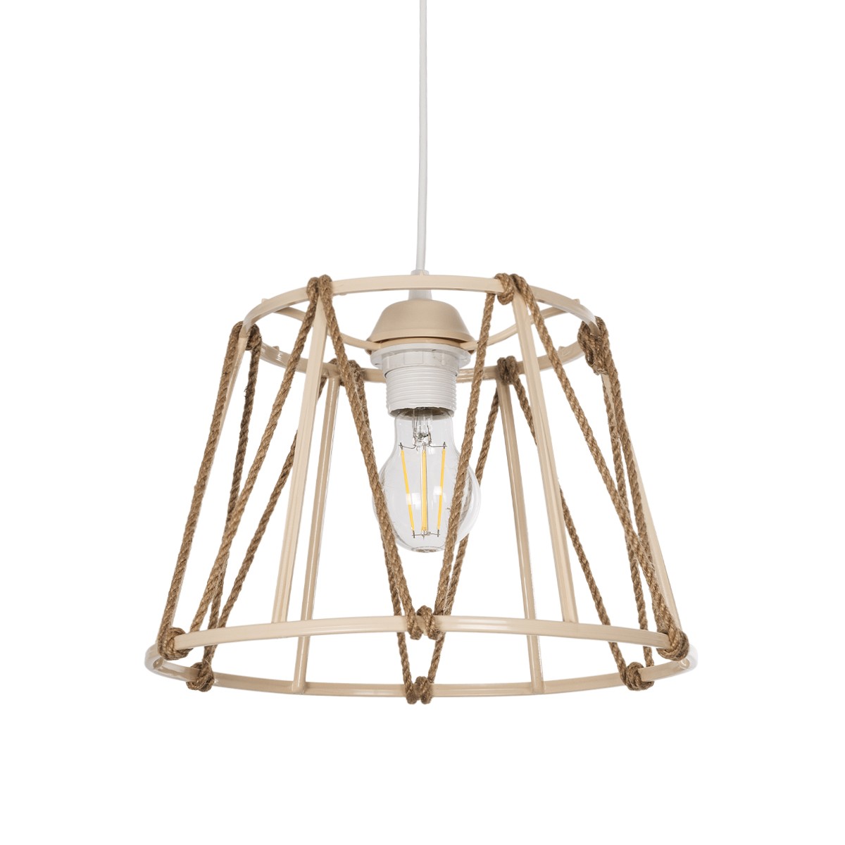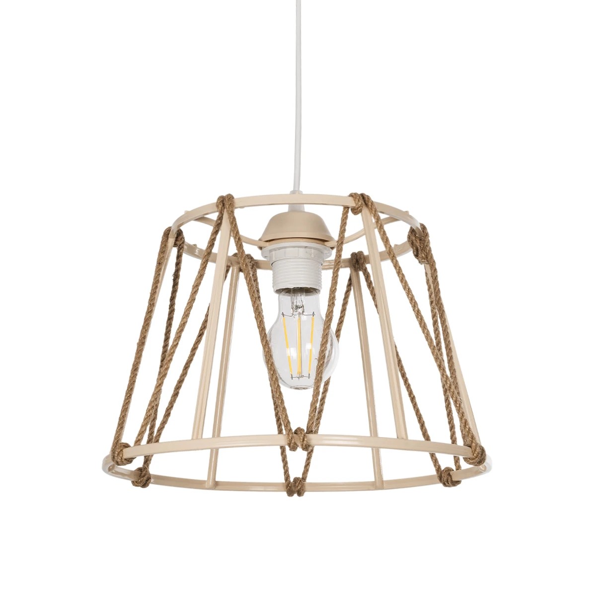 GLOBOSTAR® JUTE 203-0092 Μοντέρνο Κρεμαστό Φωτιστικό Οροφής με Ντουί 1 x E27 AC 220-240V IP20 - Μπεζ - Μ30 x Π30 x Υ23cm