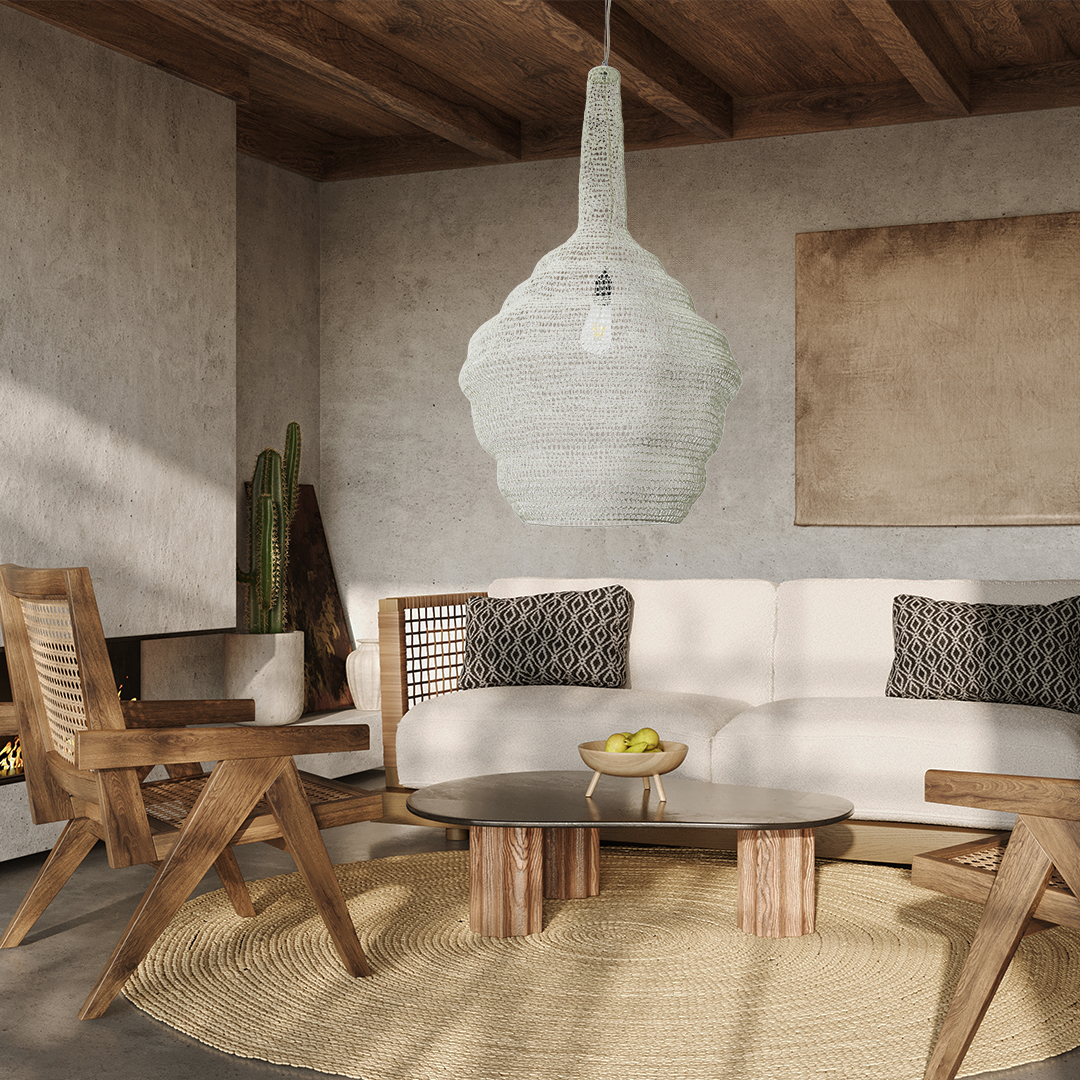 GLOBOSTAR® KENTUCKY 01883 Vintage Κρεμαστό Φωτιστικό Οροφής με Ντουί 1 x E27 AC 220-240V IP20 - Λευκό - Μ60 x Π60 x Υ90cm