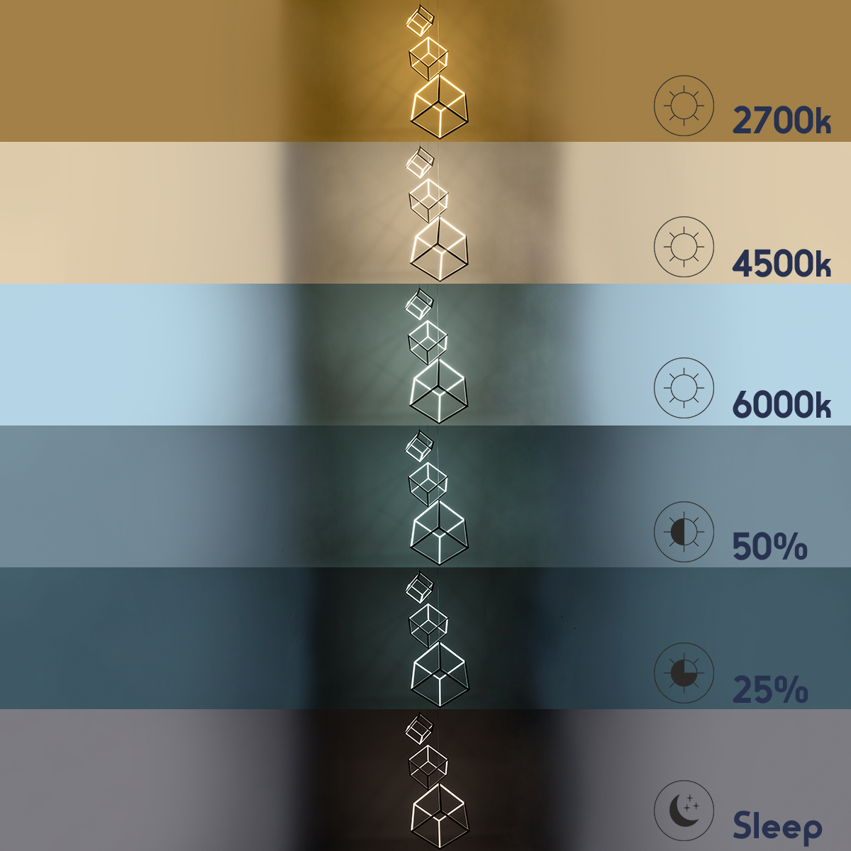 GLOBOSTAR® KIBOO-TRIO 60931 Μοντέρνο Κρεμαστό Φωτιστικό Οροφής LED 90W 10350lm 360° AC 220-240V IP20 Ρυθμιζόμενο Λευκό CCT με Χειριστήριο από 2700K έως 6000K Dimmable - Lumileds SMD Chip - Μαύρο Ματ - Μ60 x Π60 x Υ80cm - 3 Χρόνια Εγγύηση
