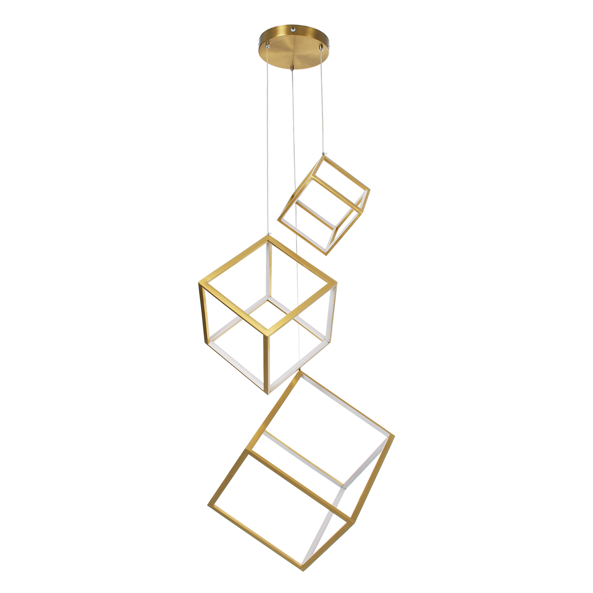 GLOBOSTAR® KIBOO-TRIO 60932 Μοντέρνο Κρεμαστό Φωτιστικό Οροφής LED 90W 10350lm 360° AC 220-240V IP20 Ρυθμιζόμενο Λευκό CCT με Χειριστήριο από 2700K έως 6000K Dimmable - Lumileds SMD Chip - Χρυσό - Μ60 x Π60 x Υ80cm - 3 Χρόνια Εγγύηση