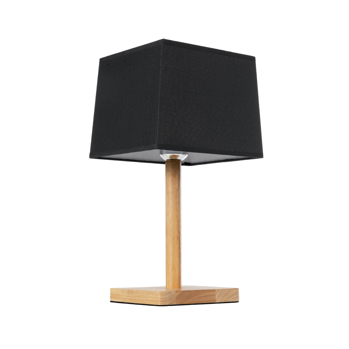 GloboStar® KOLIPE 02039 Μοντέρνο Επιτραπέζιο Φωτιστικό Πορτατίφ Μονόφωτο 1 x E27 IP20 Μπεζ Ξύλο με Μαύρο Ύφασμα - Μ20 x Π20 x Υ38cm