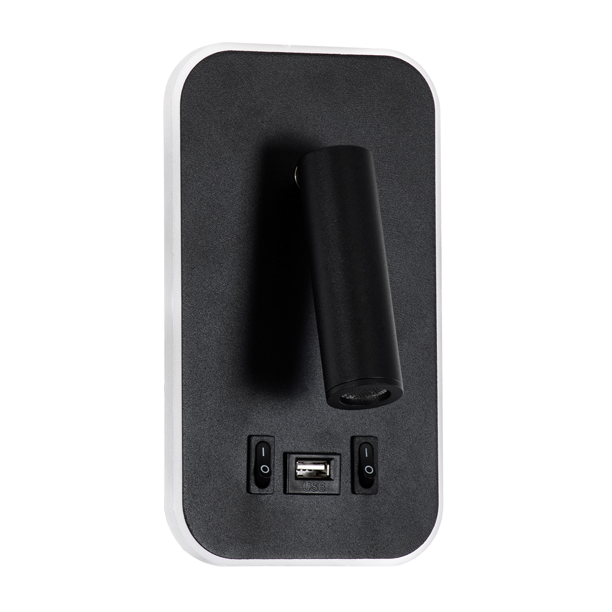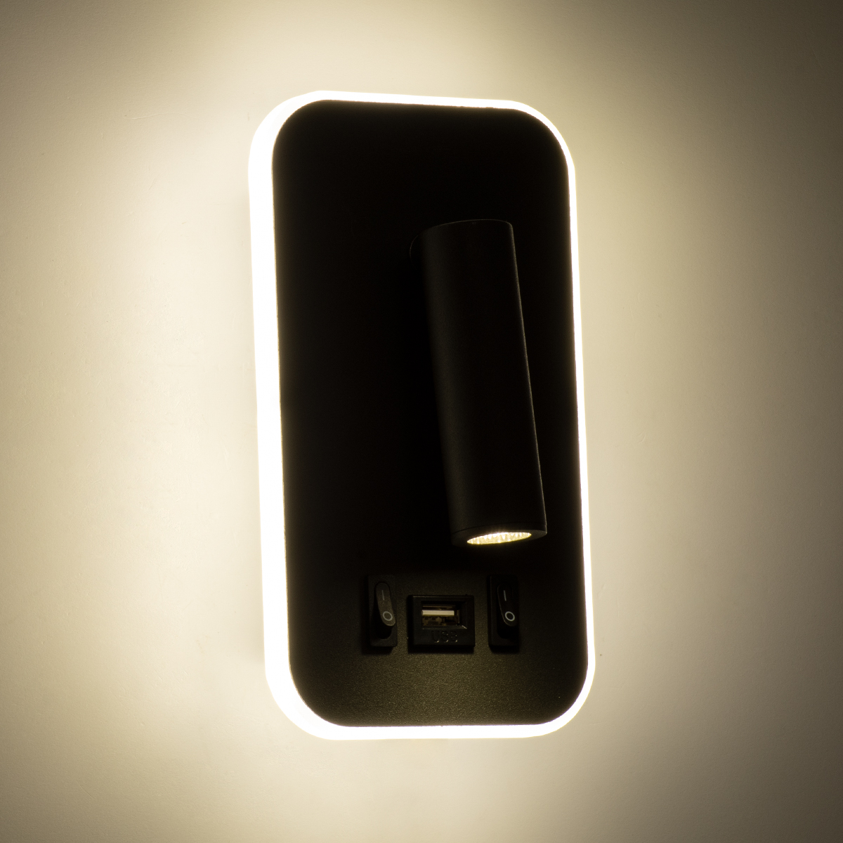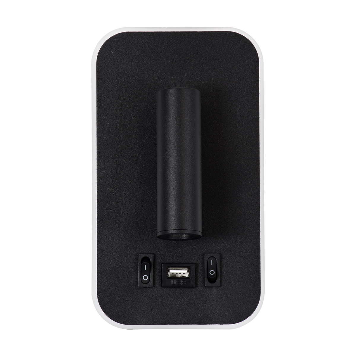 GLOBOSTAR® LADY-O 61363 Μοντέρνο Φωτιστικό Τοίχου - Απλίκα Ξενοδοχείου Reading Light με Φορτιστή USB 3A LED 10W 1000lm 36° & 360° AC 220-240V IP20 Φυσικό Λευκό 4500K - Bridgelux COB Chip & TÜV SÜD Driver - Μαύρο Ματ - Μ10.5 x Π10 x Υ18.5cm - 3 Χρόνια Εγγύ