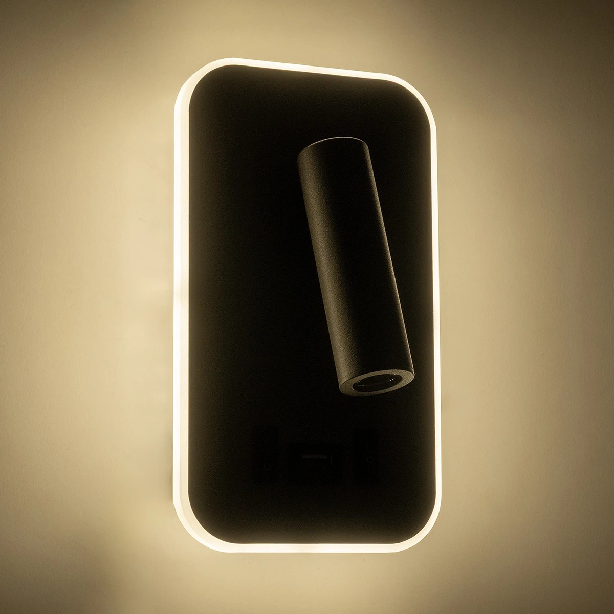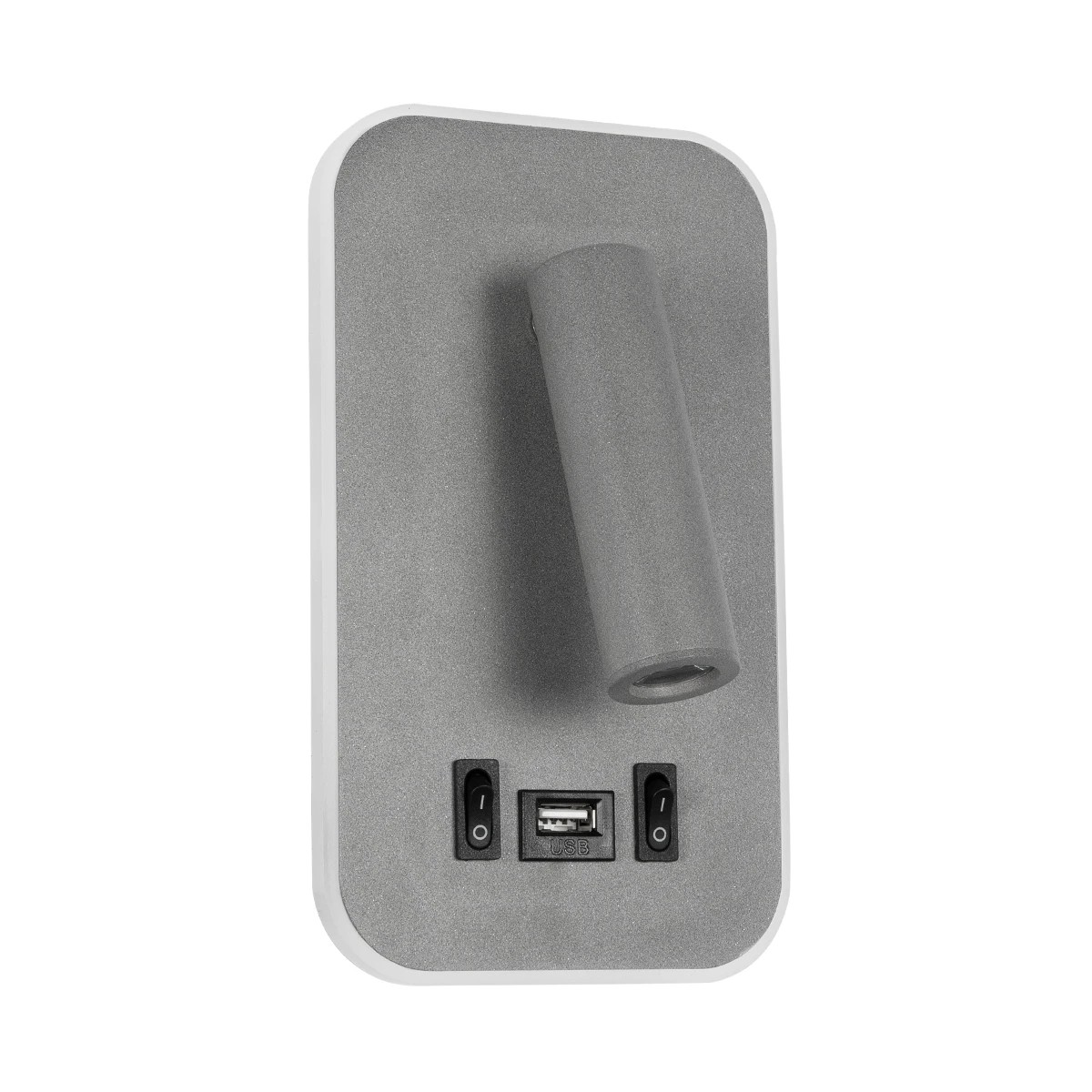 GLOBOSTAR® LADY-O 61365 Μοντέρνο Φωτιστικό Τοίχου - Απλίκα Ξενοδοχείου Reading Light με Φορτιστή USB 3A LED 10W 1000lm 36° & 360° AC 220-240V IP20 Φυσικό Λευκό 4500K - Bridgelux COB Chip & TÜV SÜD Driver - Γκρι Ματ - Μ10.5 x Π10 x Υ18.5cm - 3 Χρόνια Εγγύη