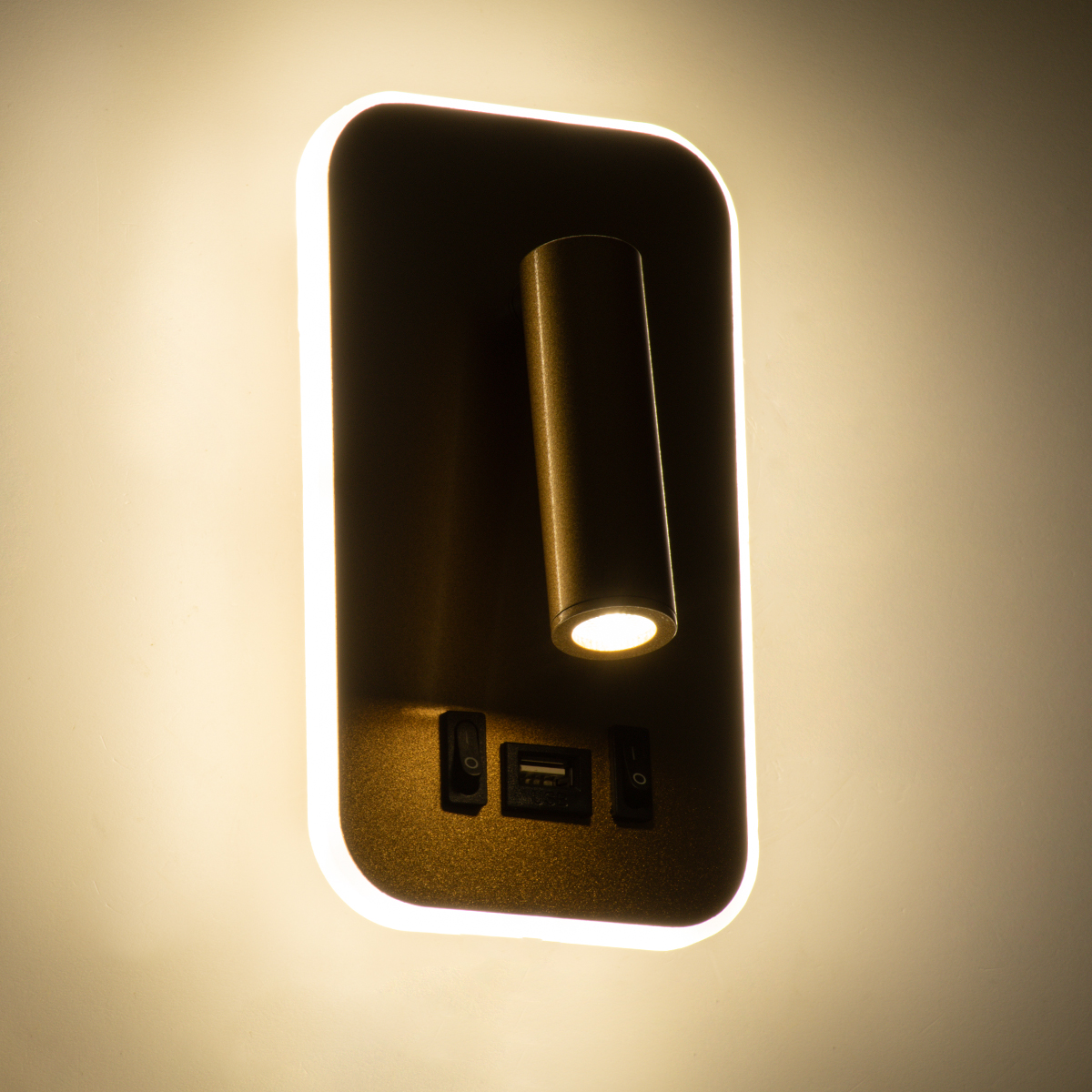 GLOBOSTAR® LADY-O 61366 Μοντέρνο Φωτιστικό Τοίχου - Απλίκα Ξενοδοχείου Reading Light με Φορτιστή USB 3A LED 10W 1000lm 36° & 360° AC 220-240V IP20 Φυσικό Λευκό 4500K - Bridgelux COB Chip & TÜV SÜD Driver - Χρυσό Βούρτσας - Μ10.5 x Π10 x Υ18.5cm - 3 Χρόνια