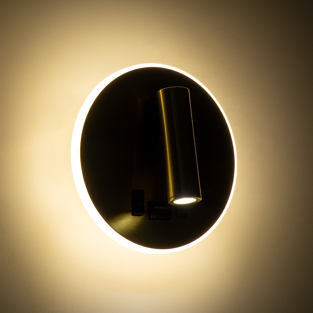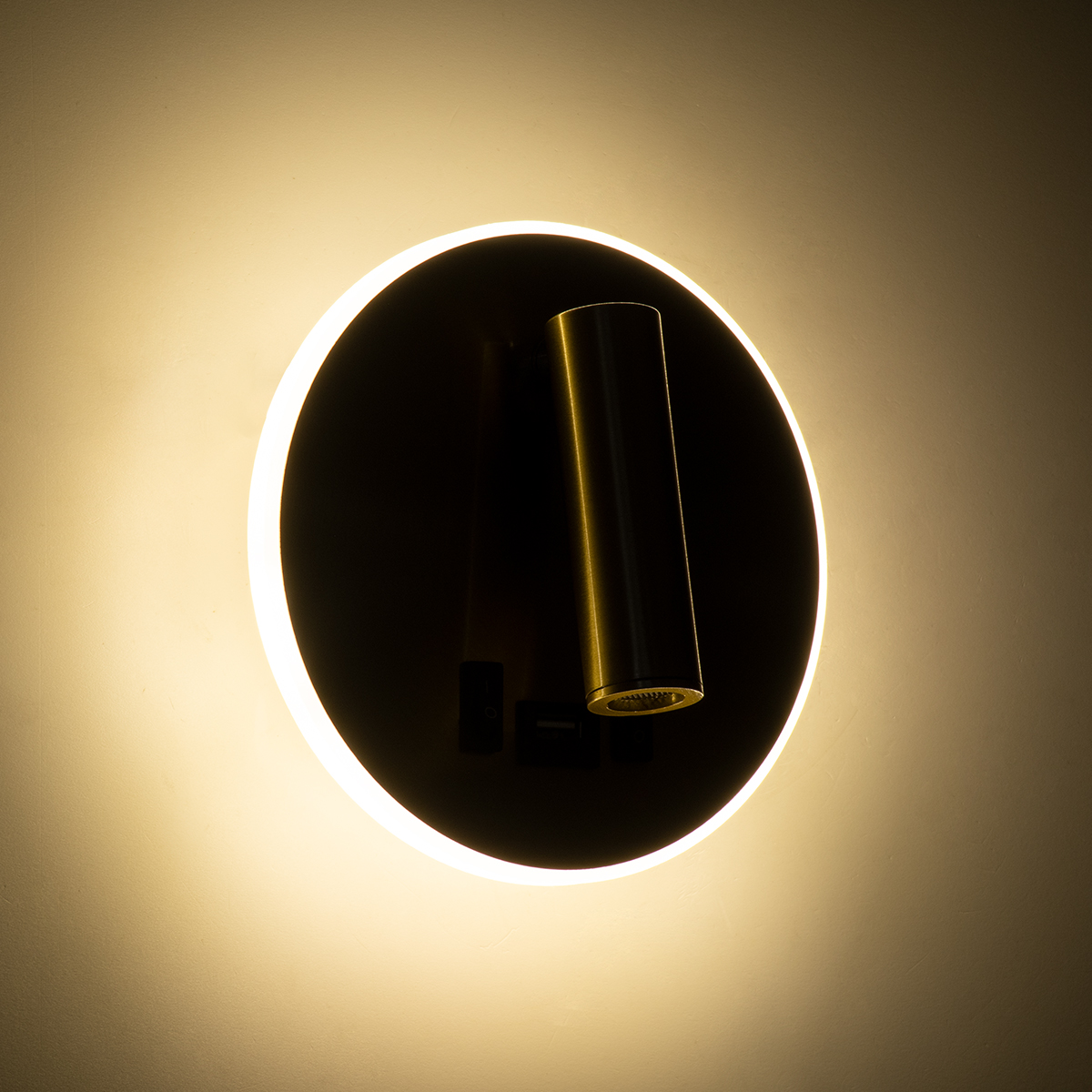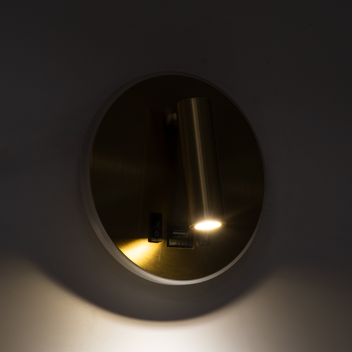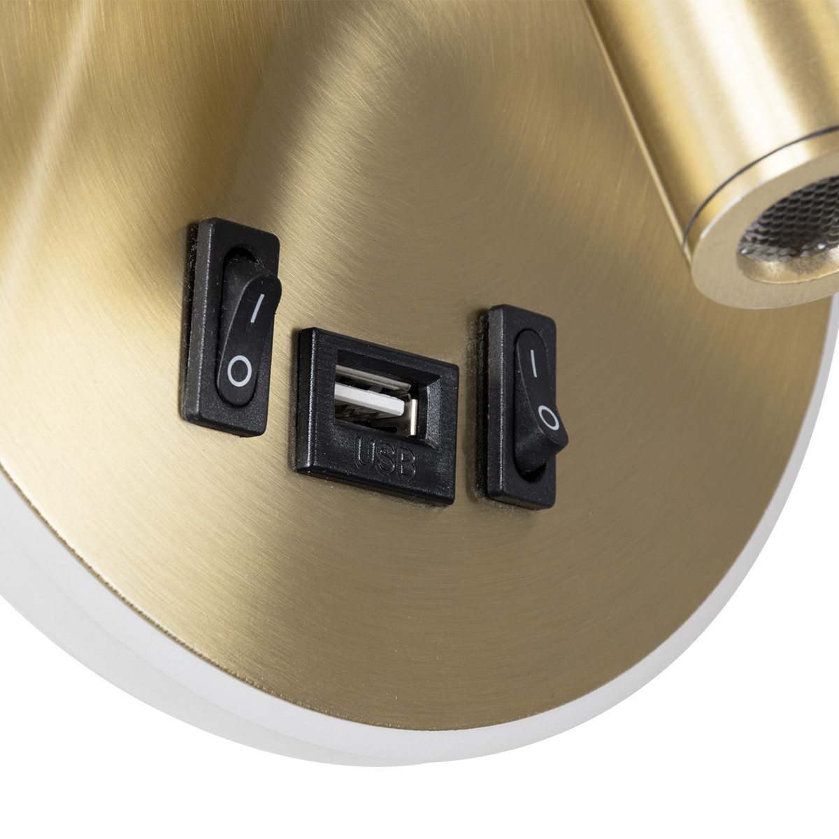 GLOBOSTAR® LADY-R 60940 Μοντέρνο Φωτιστικό Τοίχου - Απλίκα Ξενοδοχείου Reading Light με Φορτιστή USB 3A LED 6W 600lm 36° & 360° AC 220-240V IP20 Φυσικό Λευκό 4500K - Bridgelux COB Chip & TÜV SÜD Driver - Χρυσό Βούρτσας - Μ15 x Π15 x Υ17cm - 3 Χρόνια Εγγύη