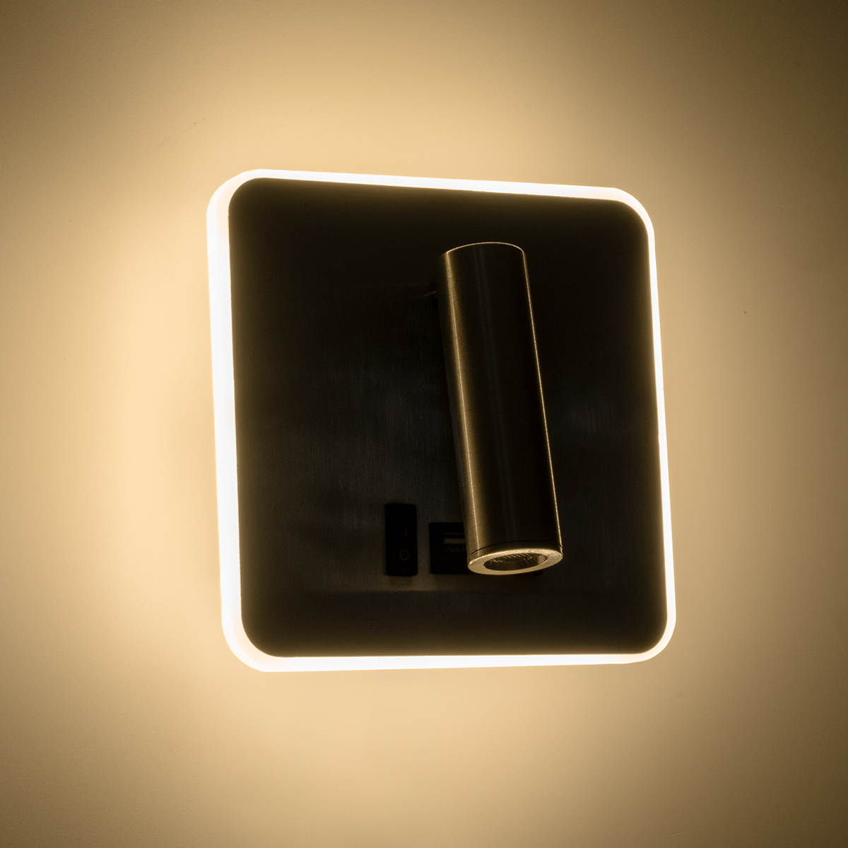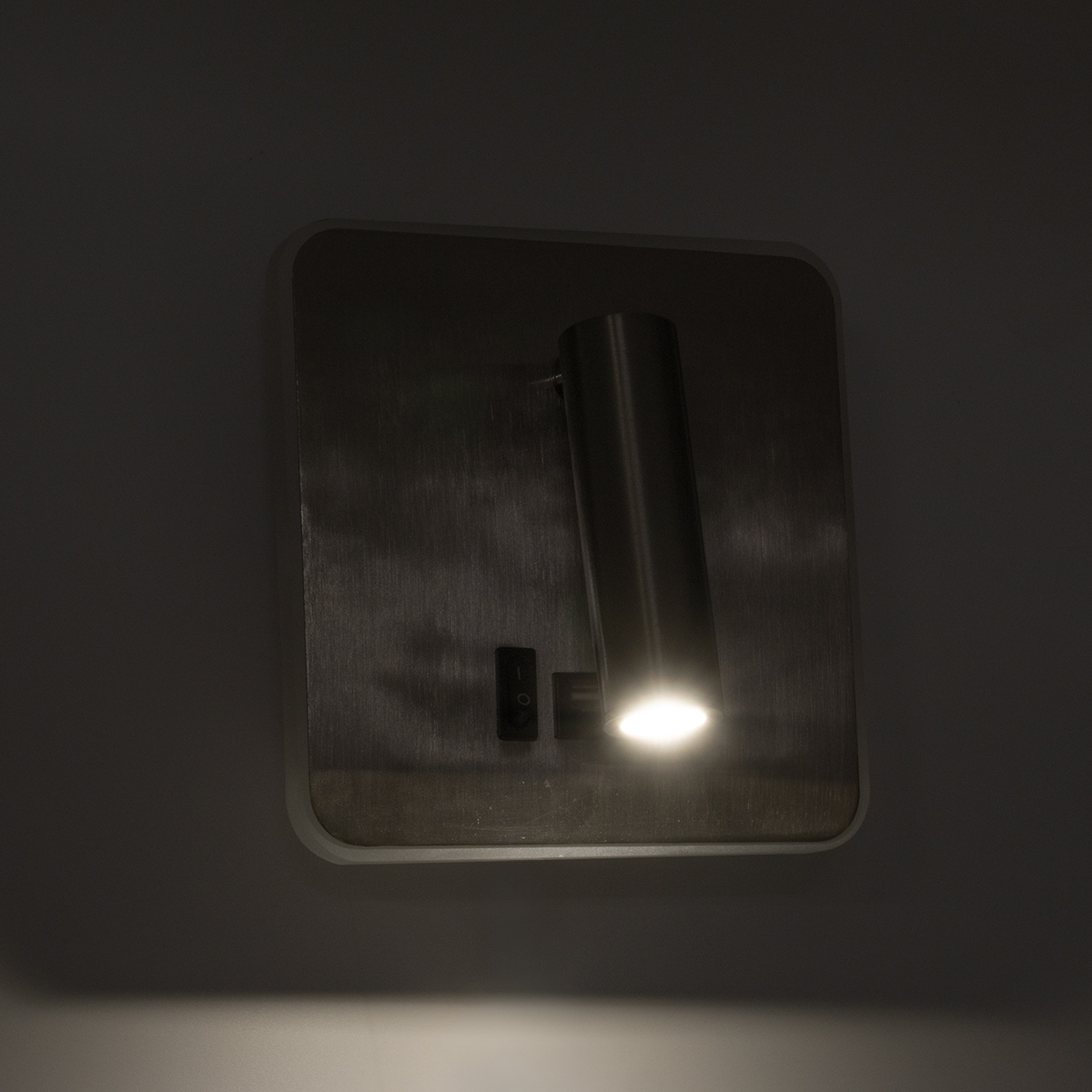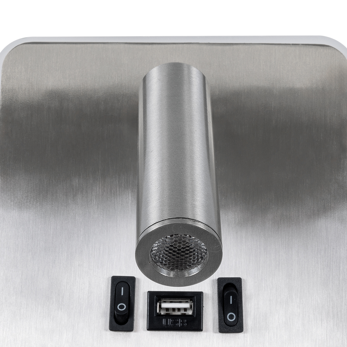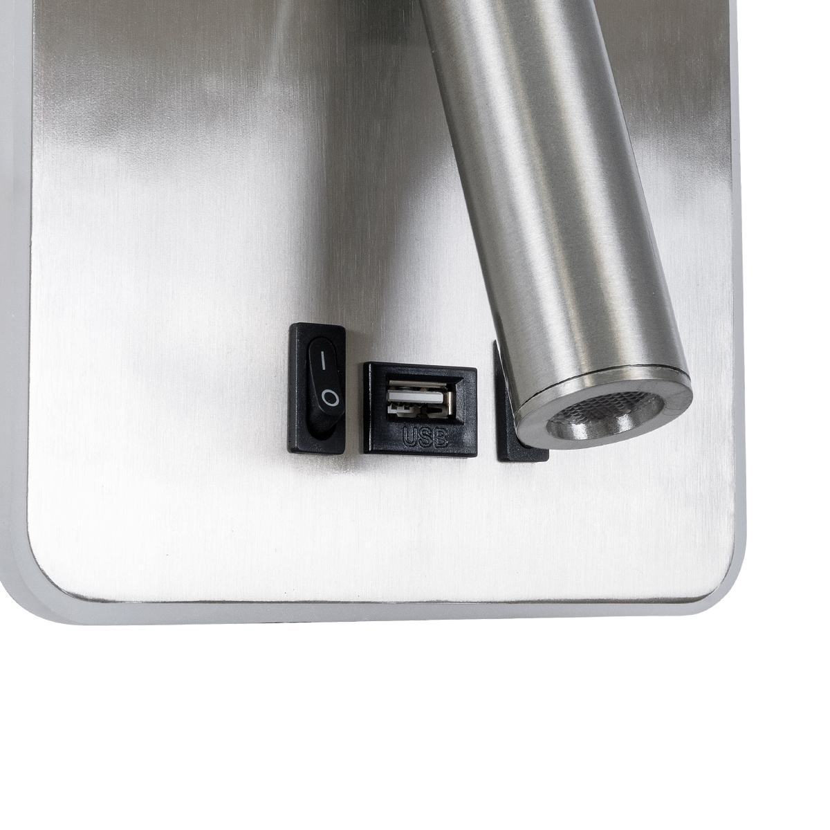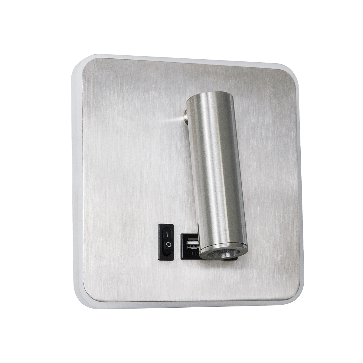GLOBOSTAR® LADY-S 60945 Μοντέρνο Φωτιστικό Τοίχου - Απλίκα Ξενοδοχείου Reading Light με Φορτιστή USB 3A LED 6W 600lm 36° & 360° AC 220-240V IP20 Φυσικό Λευκό 4500K - Bridgelux COB Chip & TÜV SÜD Driver - Νίκελ Βούρτσας - Μ15 x Π15 x Υ7cm - 3 Χρόνια Εγγύησ
