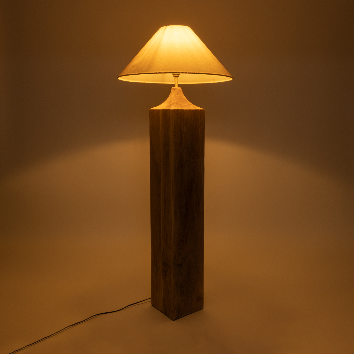 GloboStar® LAFRONTERA 02314 Boho Επιδαπέδιο Φωτιστικό Μονόφωτο 1 x E27 IP20 Καφέ Ξύλο με Μπεζ Ύφασμα - Μ55 x Π55 x Υ140cm