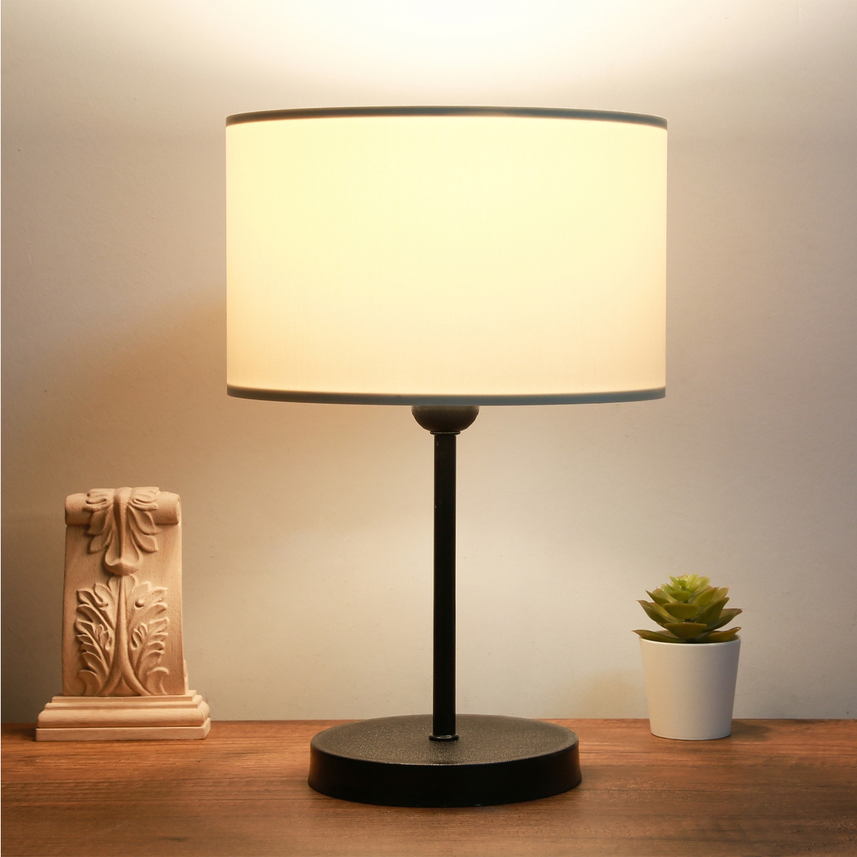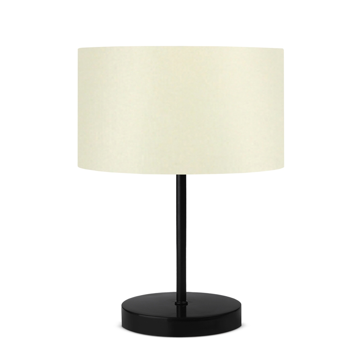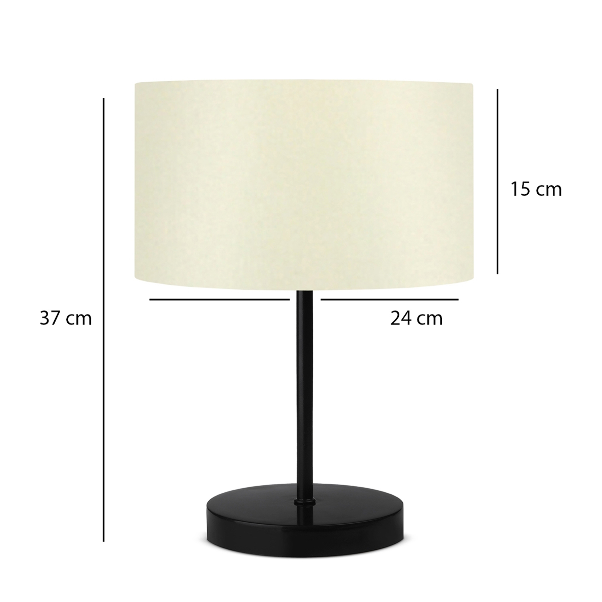 GloboStar® LARA 204-0075 Μοντέρνο Eπιτραπέζιο Φωτιστικό Πορτατίφ Μονόφωτο 1 x E27 IP20 Μαύρο Μέταλλο με Μπεζ Ύφασμα - Μ24 x Π24 x Υ35cm