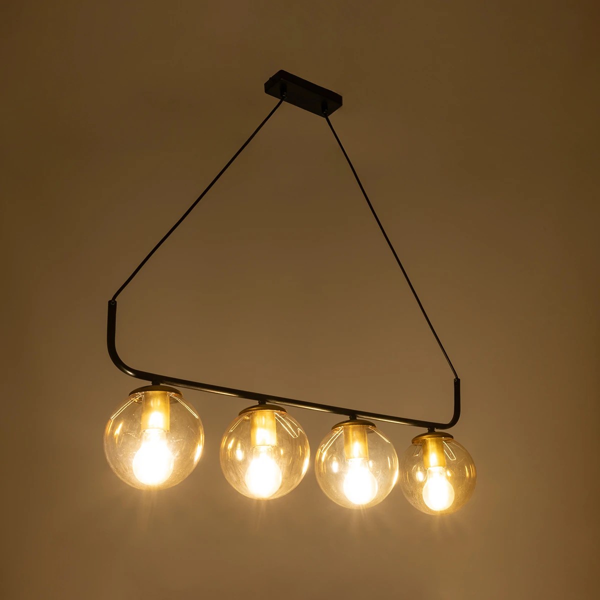 GLOBOSTAR® LATTICE 203-0018 Μοντέρνο Κρεμαστό Φωτιστικό Οροφής με Ντουί 4 x E27 AC 220-240V IP20 - Μαύρο & Μπρούτζινο - Μ78 x Π15 x Υ81cm