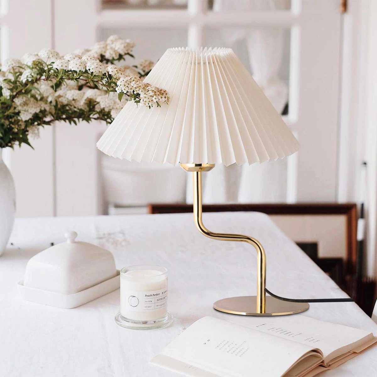 GloboStar® LIVL 204-0169 Μοντέρνο Eπιτραπέζιο Φωτιστικό Μονόφωτο 1 x E27 IP20 Χρυσό Μέταλλο με Μπεζ Ύφασμα - Μ22 x Π22 x Υ34cm