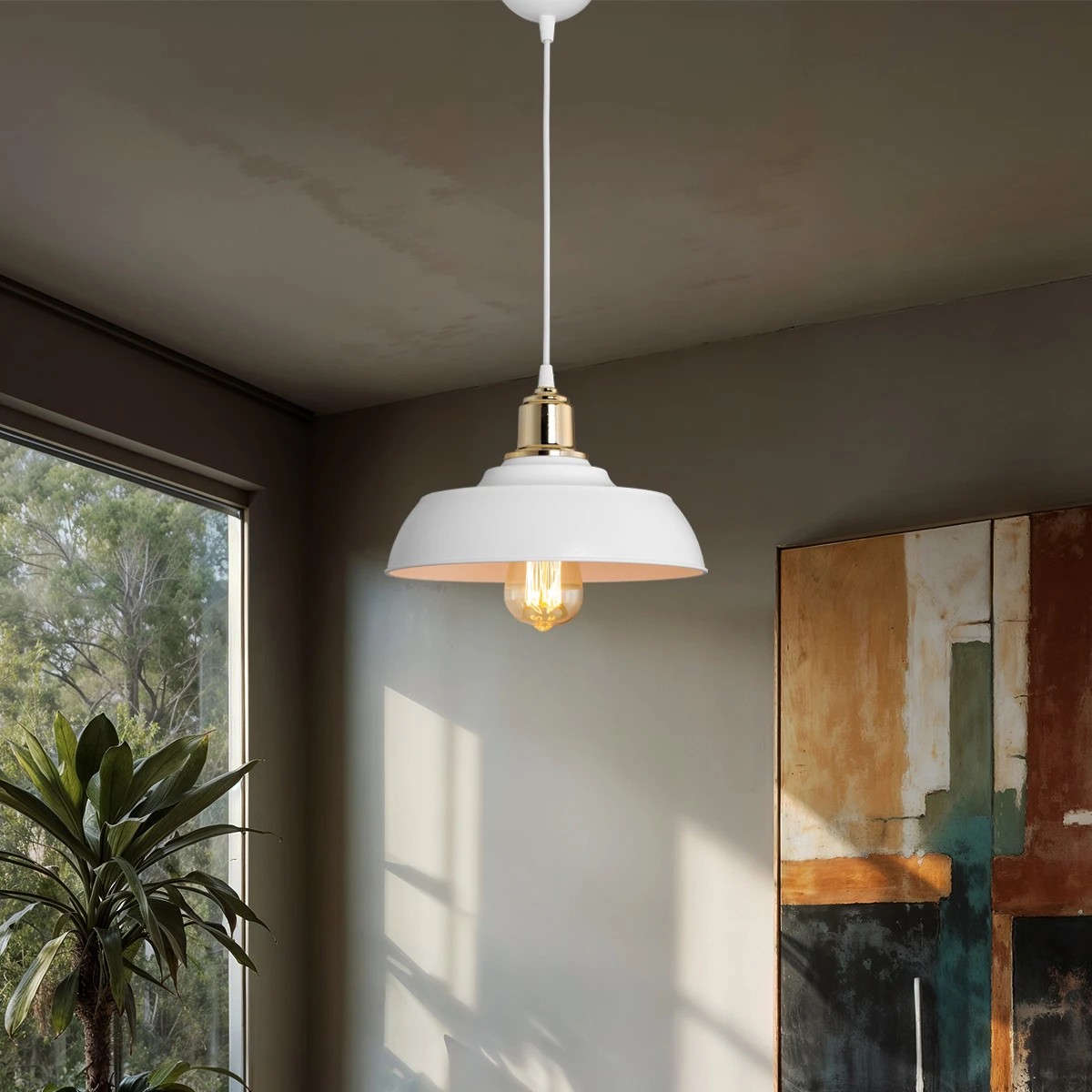 GLOBOSTAR® LOAN 203-0281 Μοντέρνο Κρεμαστό Φωτιστικό Οροφής με Ντουί 1 x E27 AC 220-240V IP20 - Λευκό & Χρυσό -Μ25.5 x Π25.5 x Υ17cm