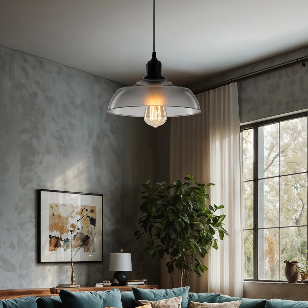 GLOBOSTAR® LOAN 203-0287 Μοντέρνο Κρεμαστό Φωτιστικό Οροφής με Ντουί 1 x E27 AC 220-240V IP20 - Γκρι Δίαφανο - Μ25.5 x Π25.5 x Υ17cm